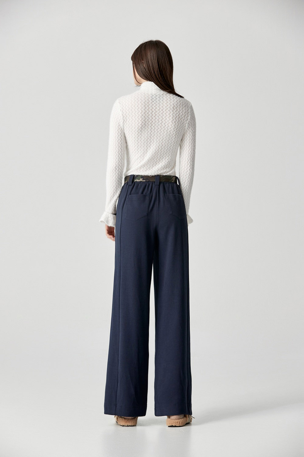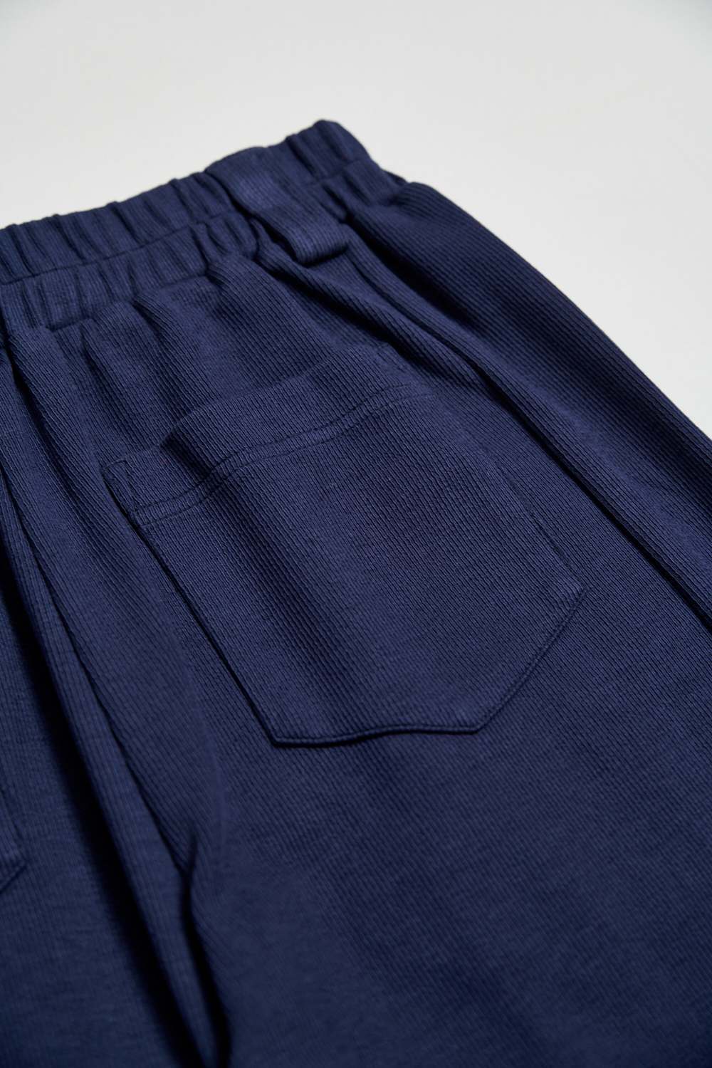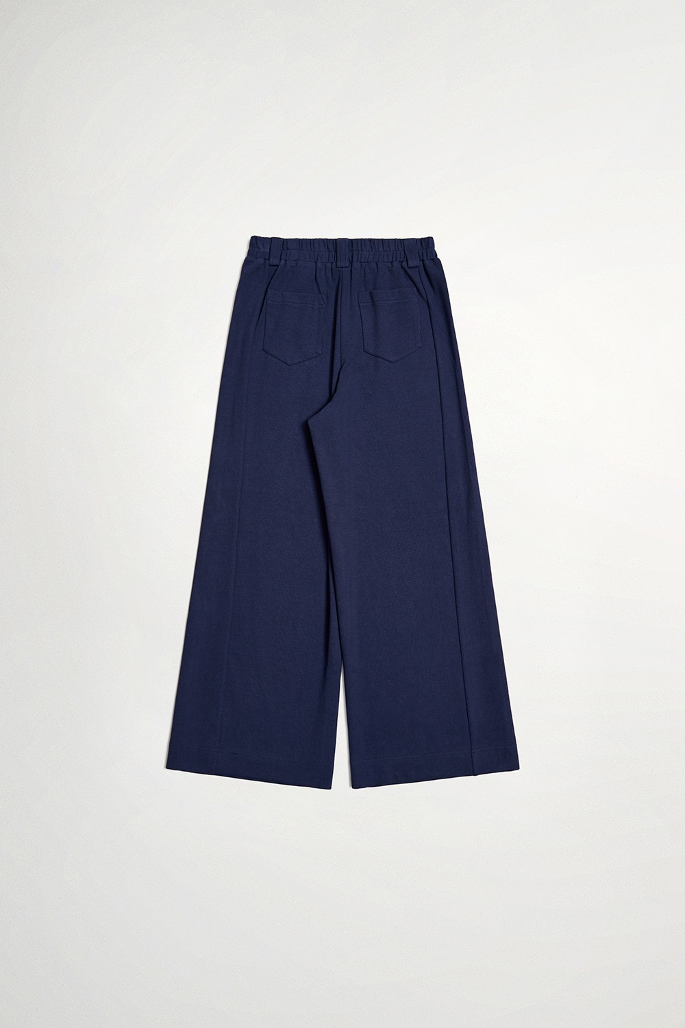 靛夜微星鬆緊腰休閒寬褲 - 深邃藏藍, 38