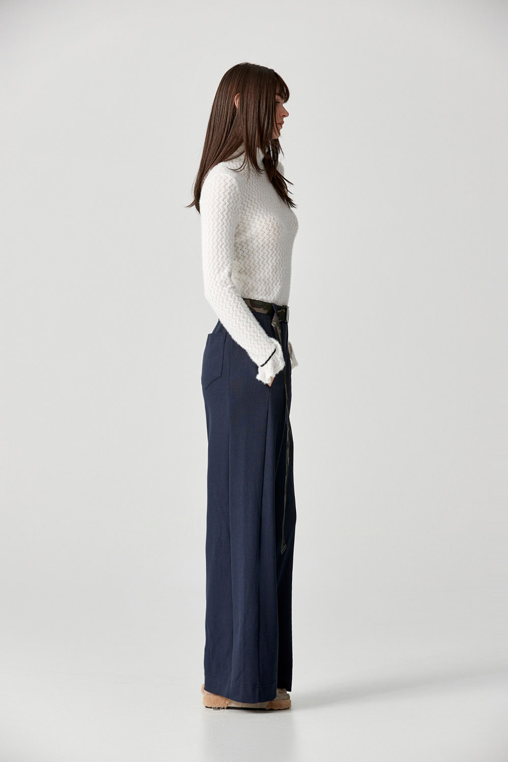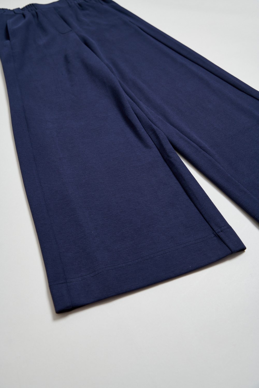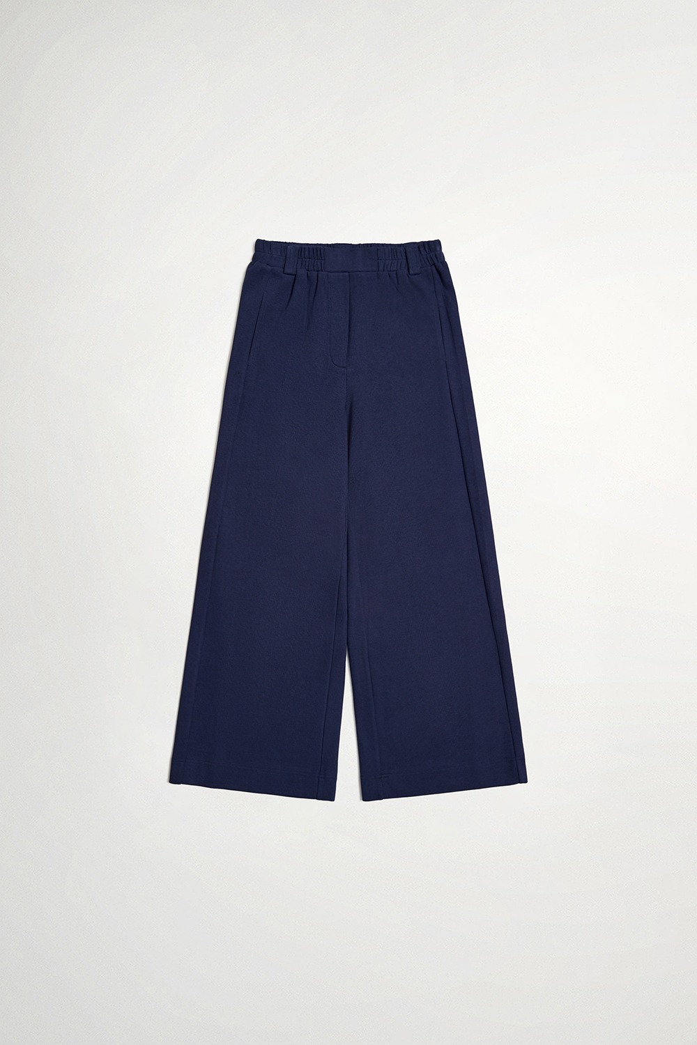 靛夜微星鬆緊腰休閒寬褲 - 深邃藏藍, 38