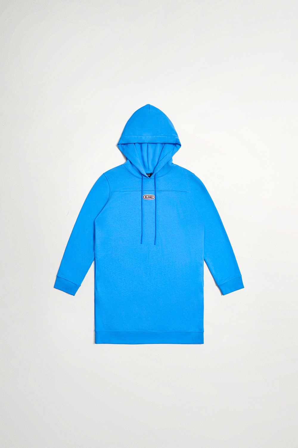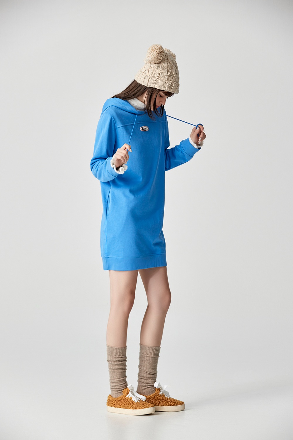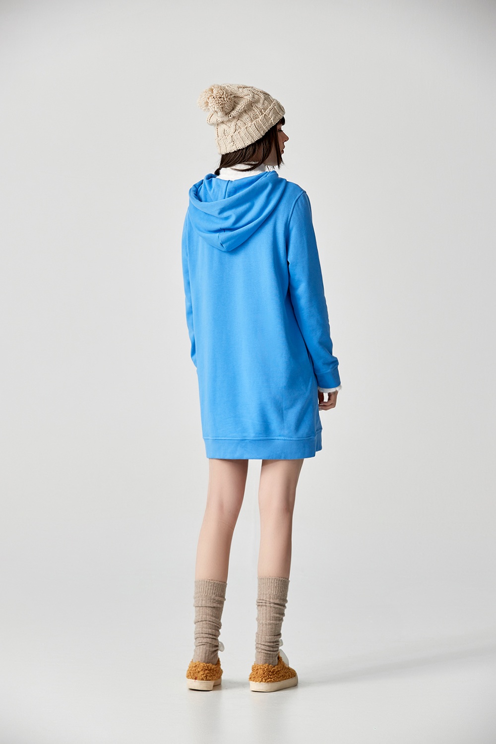 湖心藍影休閒連帽長洋裝 - 清新蔚藍, 38