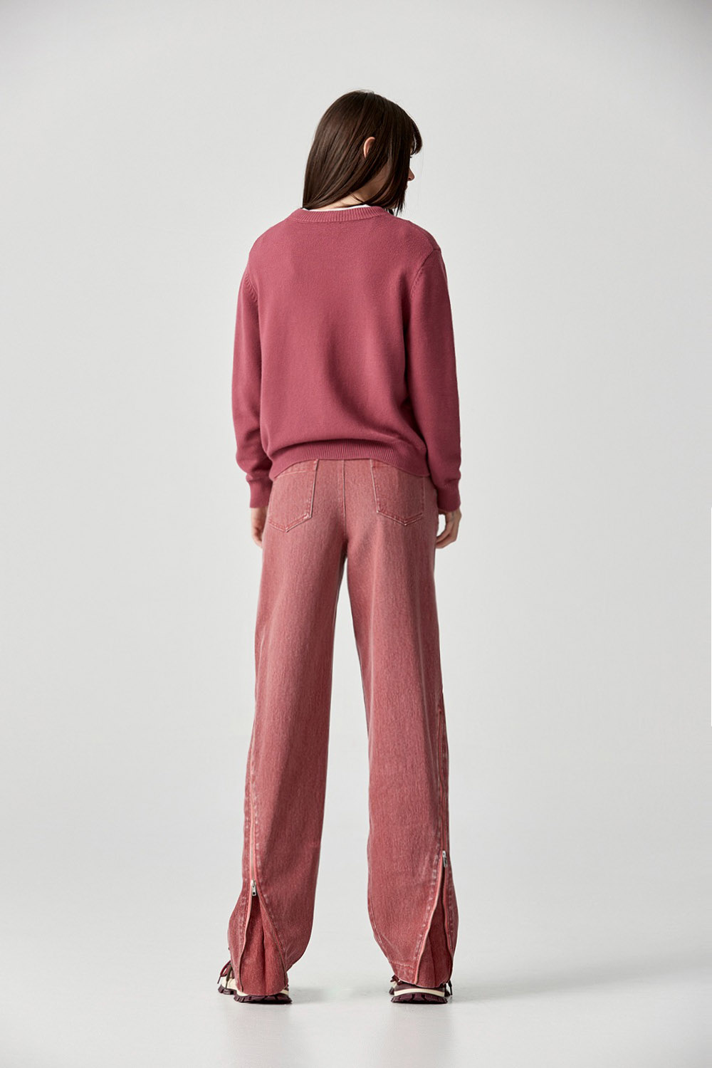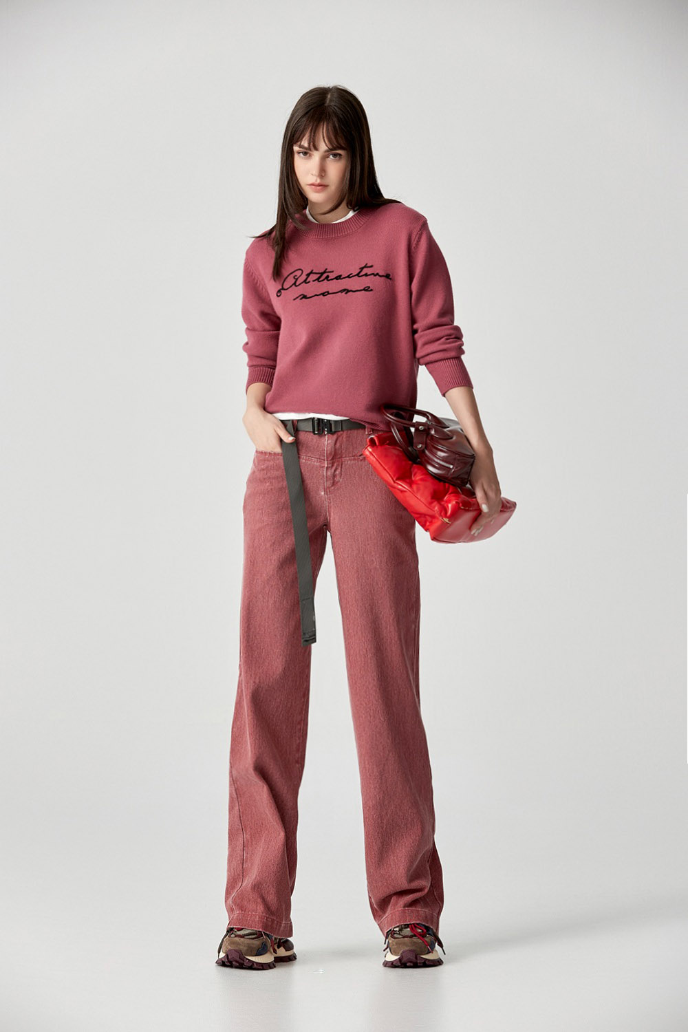 醇厚莓果字母繡針織上衣 - 耀眼赤紅, F