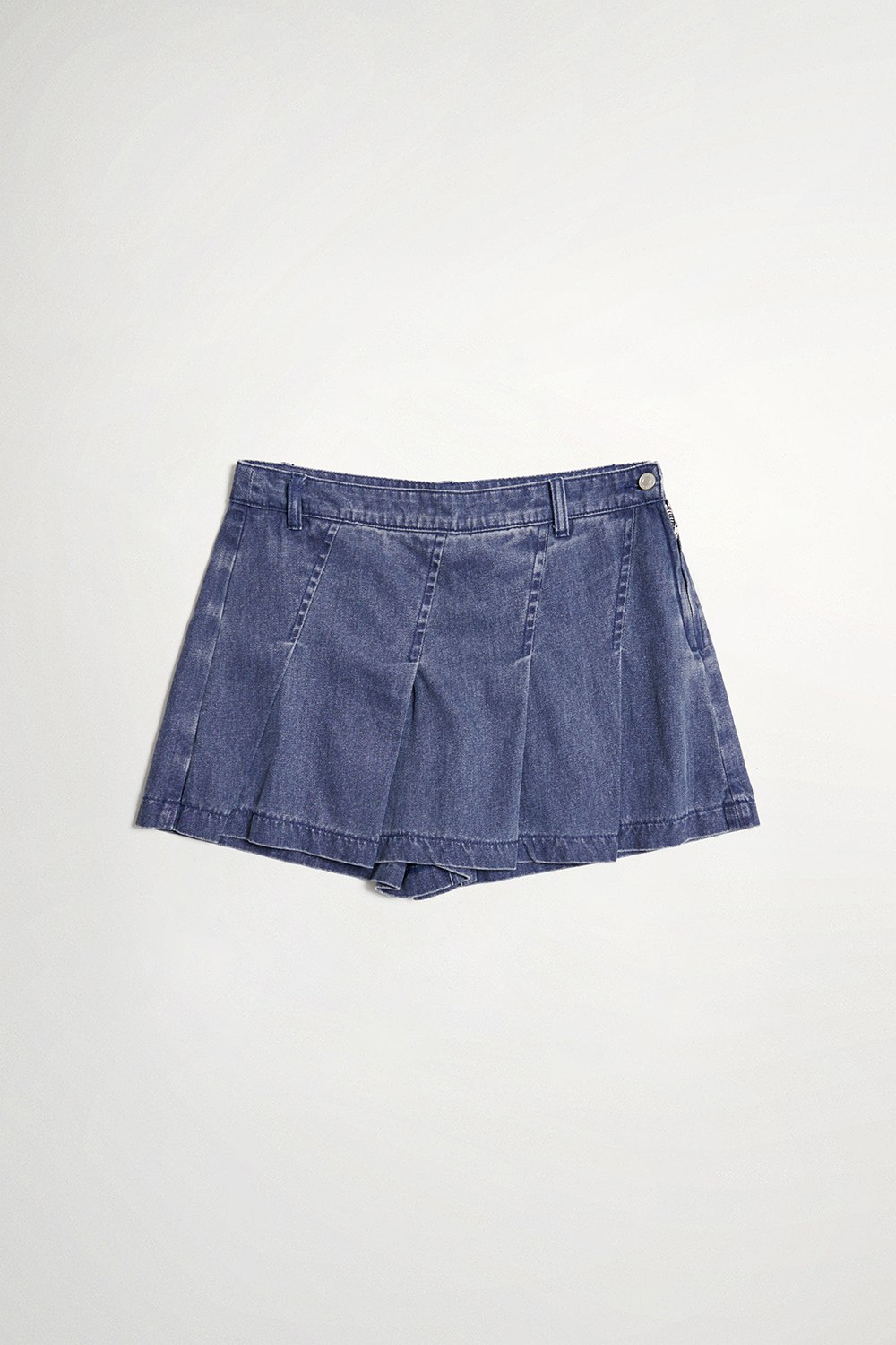 古典靛藍斜百褶短裙褲 - 深邃藏藍, 38