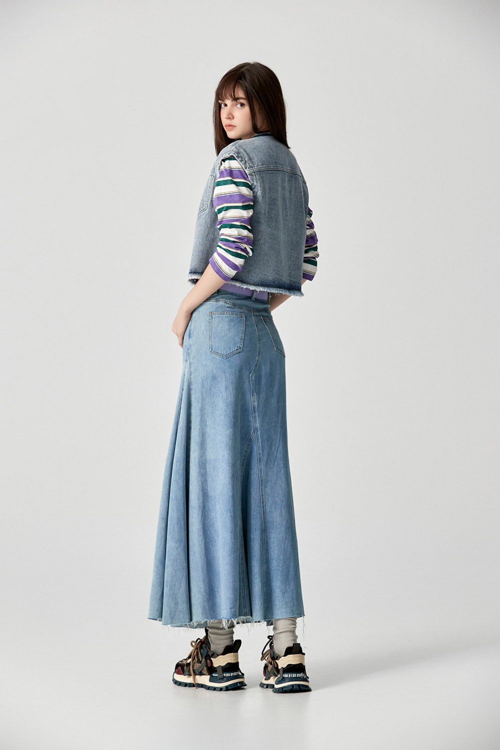舒適柔藍刷白A字牛仔裙 - 深邃藏藍, 38