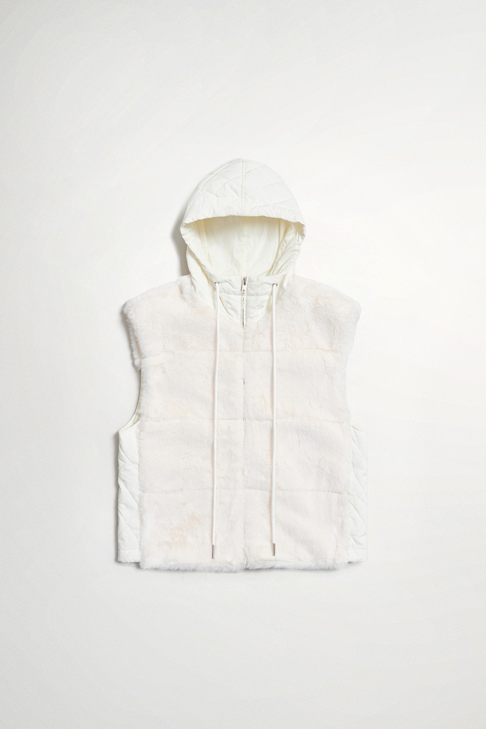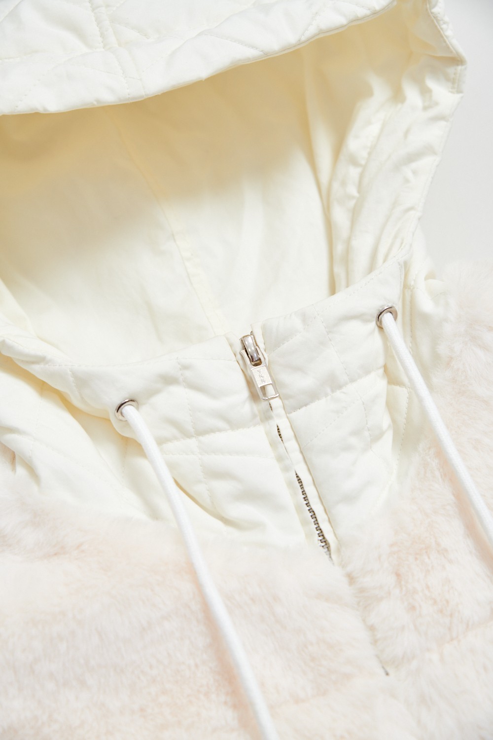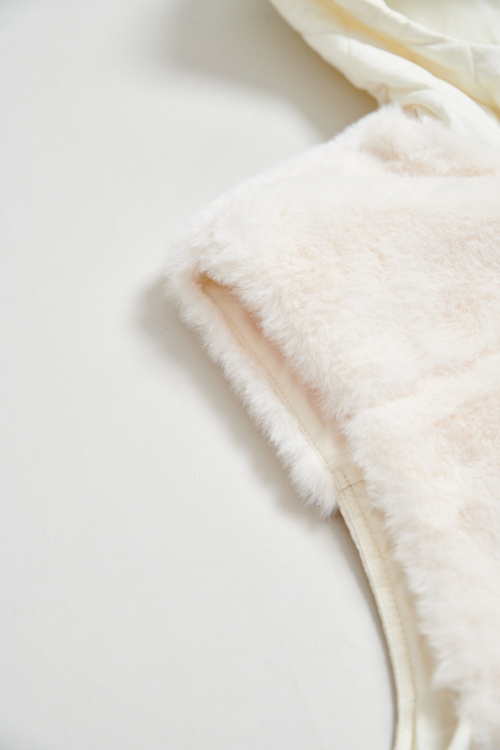 奶油棉花糖溫暖感背心式連帽外套 - 奶油杏色, 36