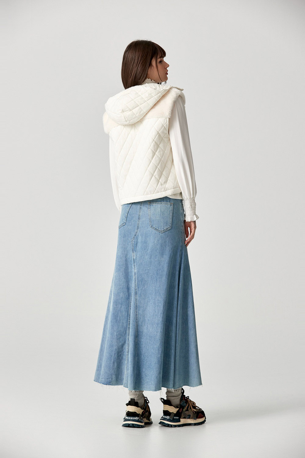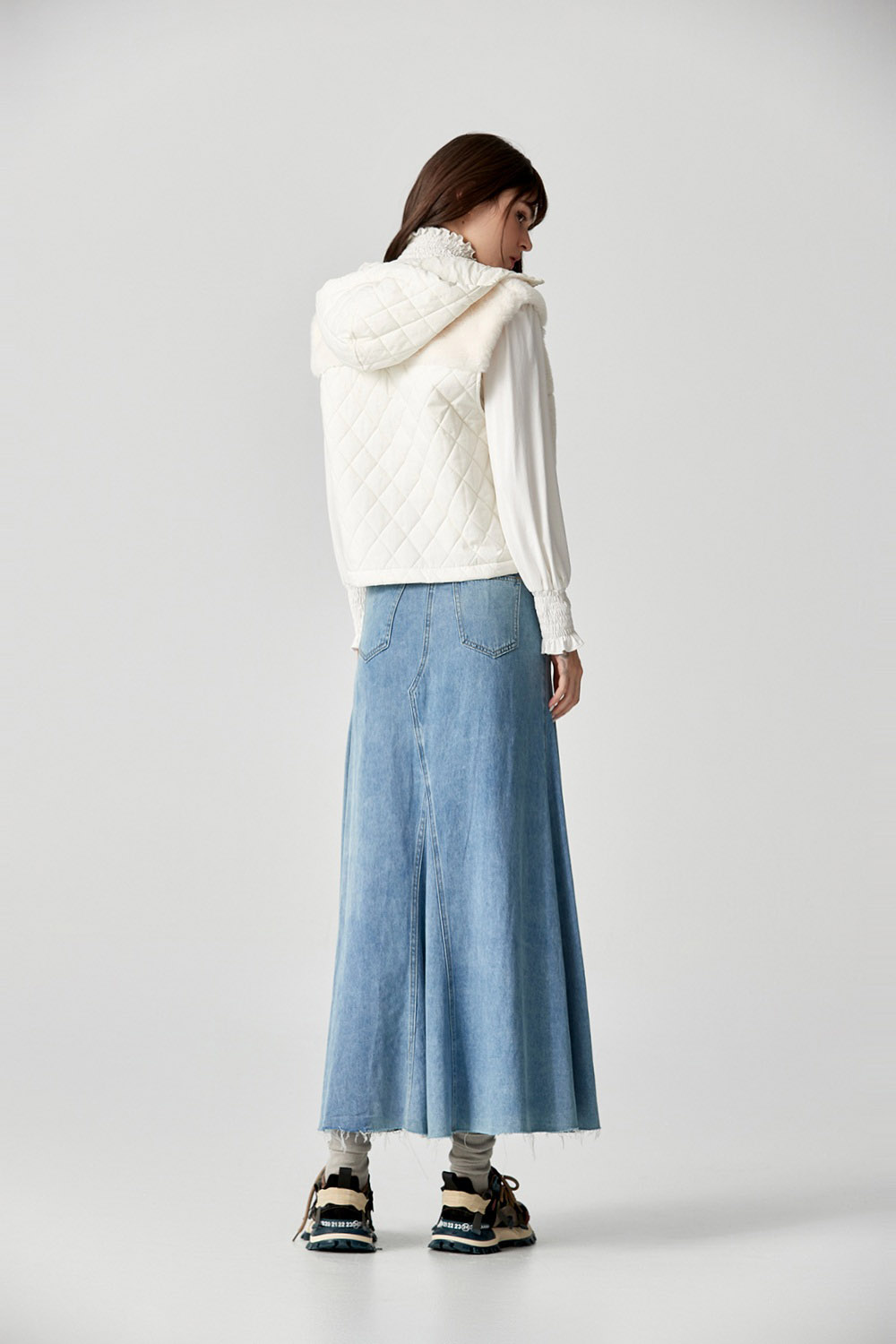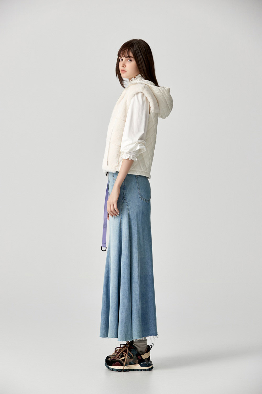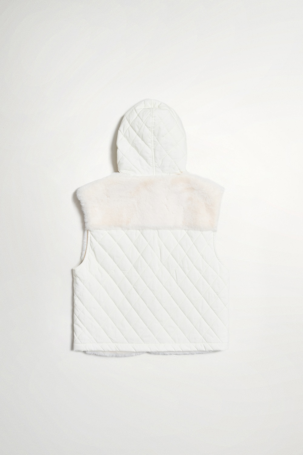 奶油棉花糖溫暖感背心式連帽外套 - 奶油杏色, 36
