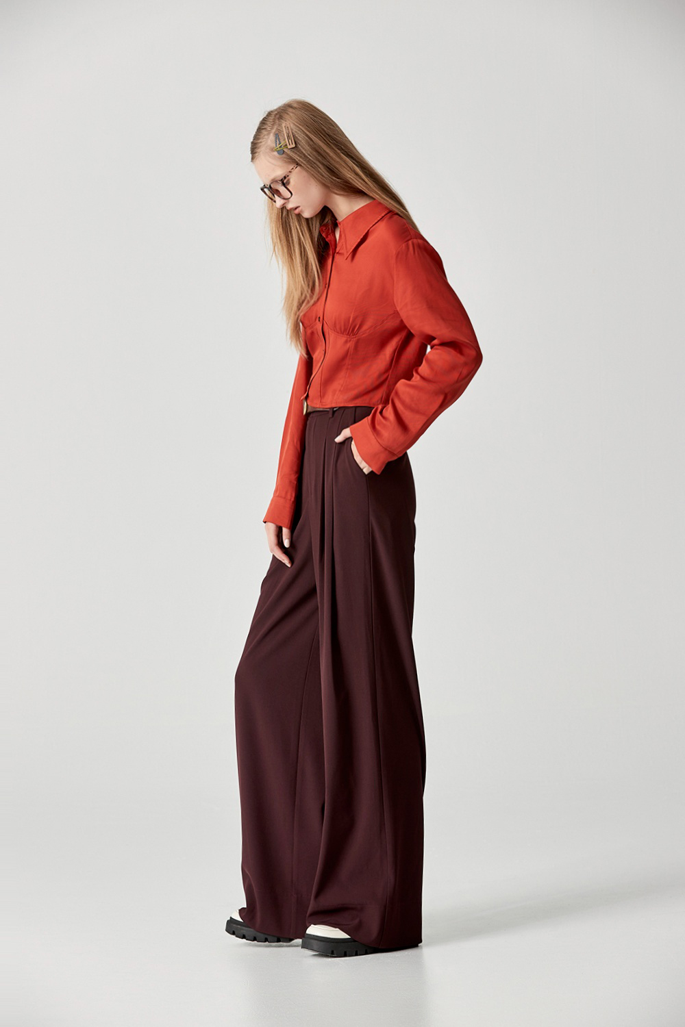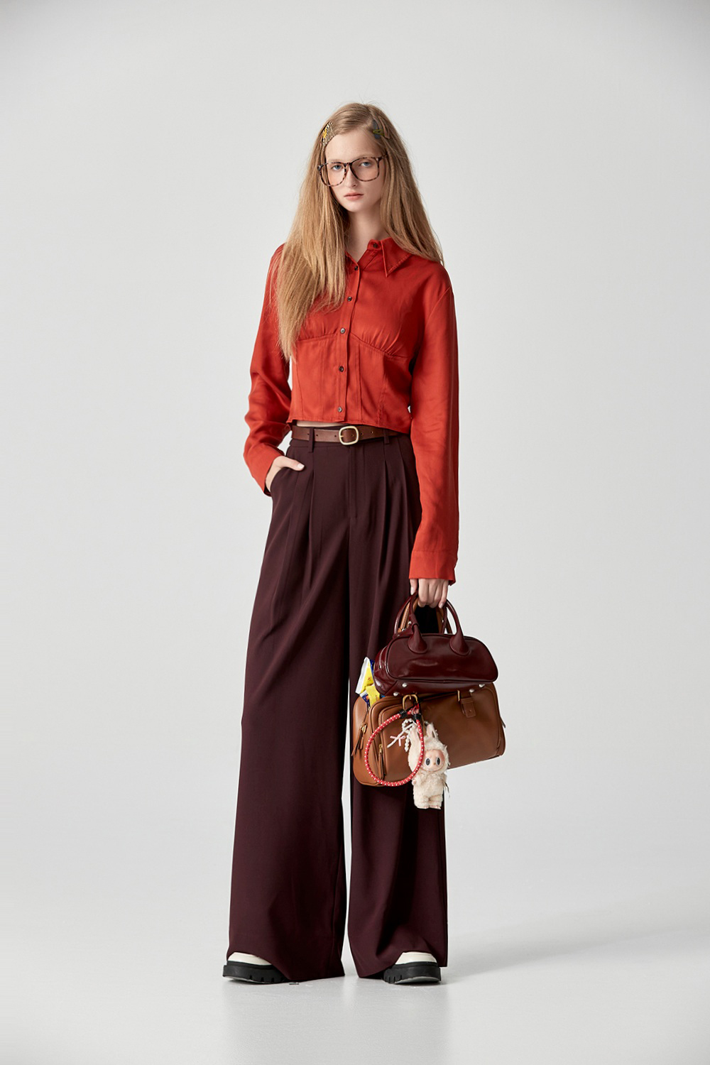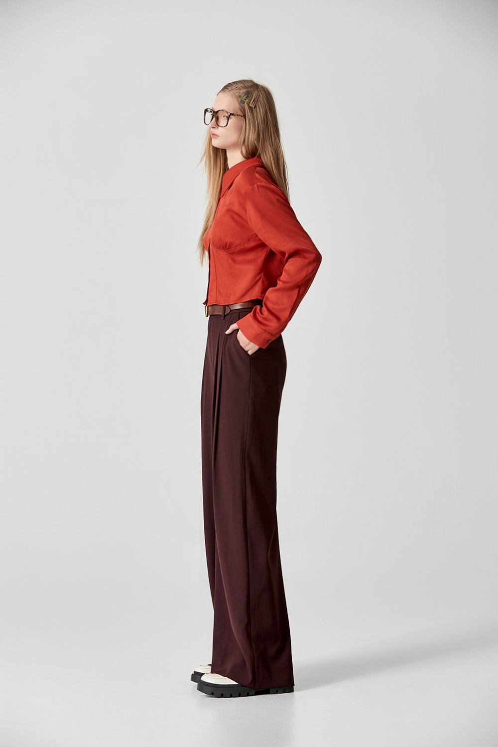 魅惑深紅修身抓褶褲 - 耀眼赤紅, 40