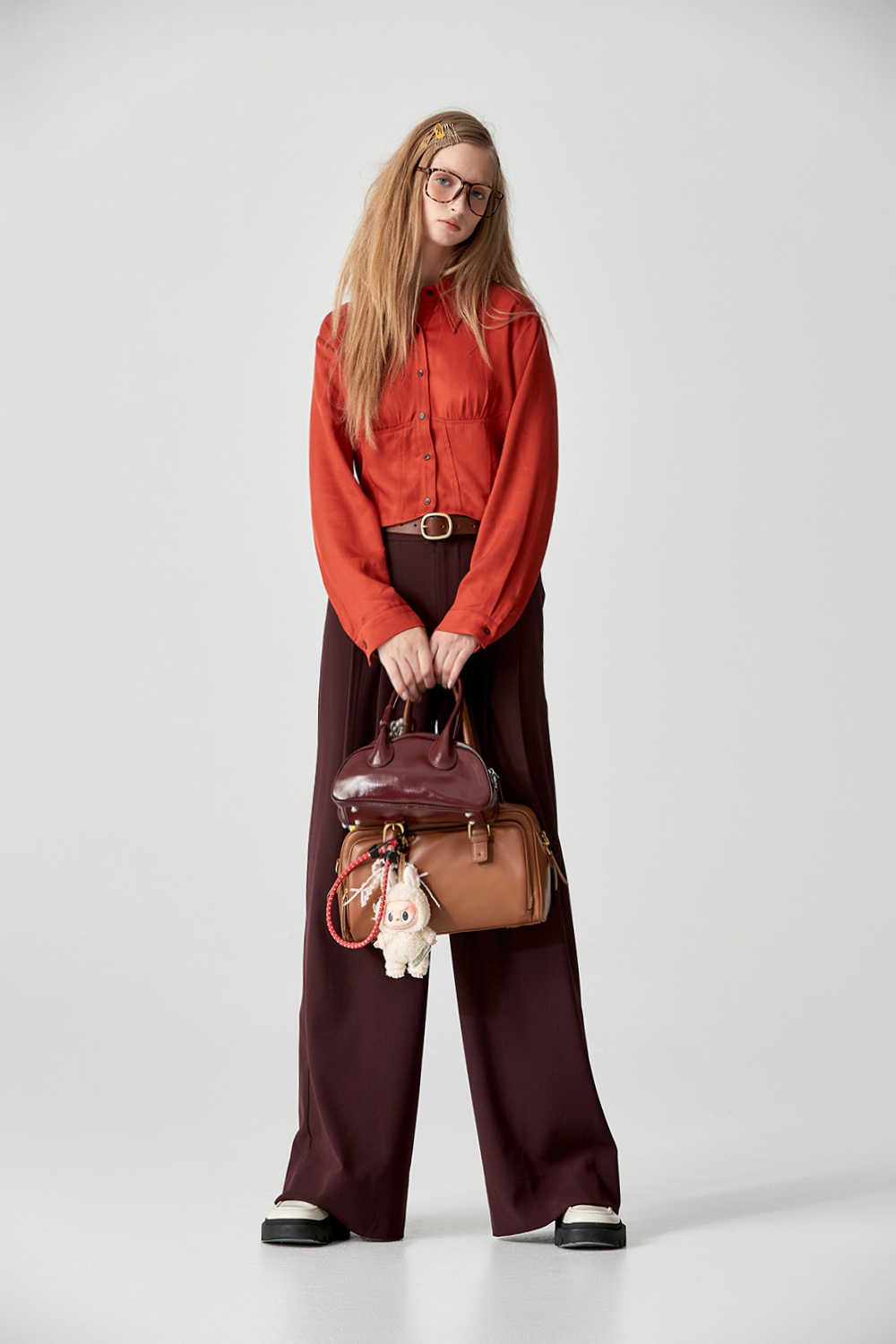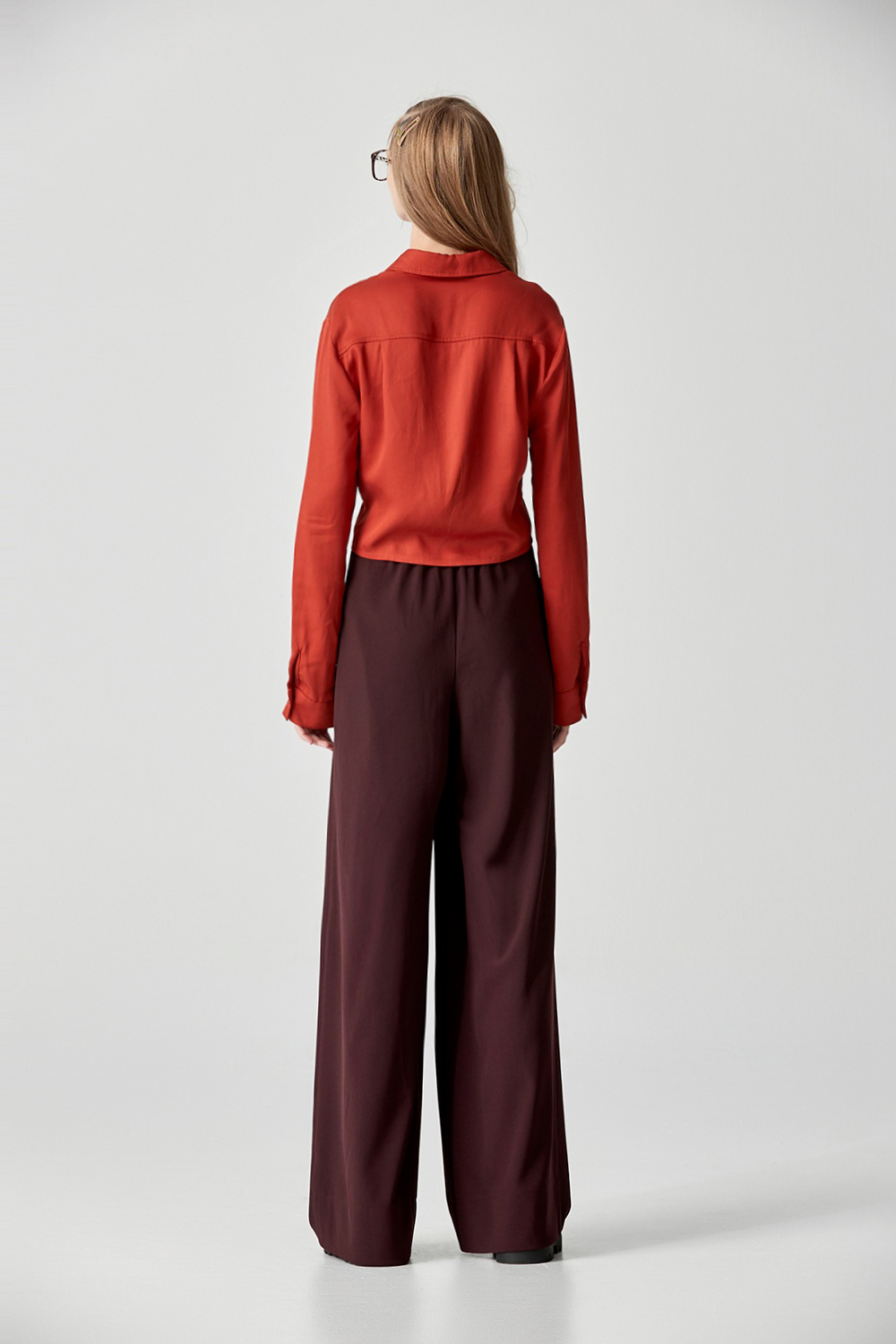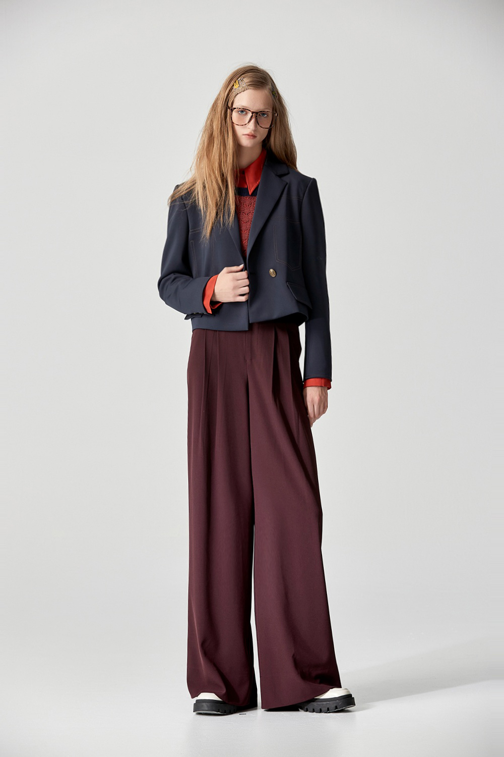 魅惑深紅修身抓褶褲 - 耀眼赤紅, 40