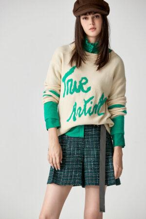 暖意霞光慵懶長版針織上衣 - 奶油杏色, F