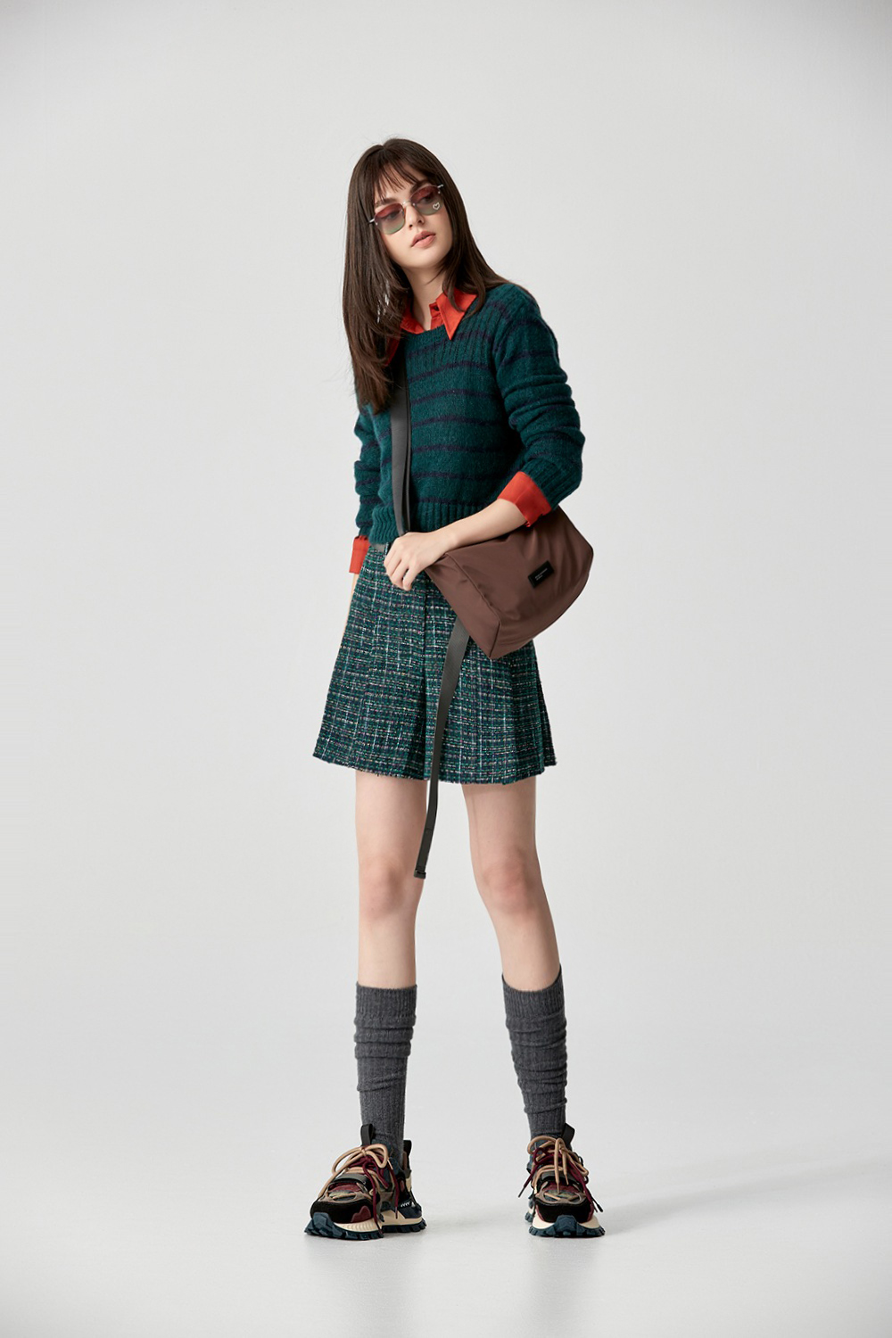 綠幕疊影毛海感條紋針織上衣 - 霧柔墨綠, 36