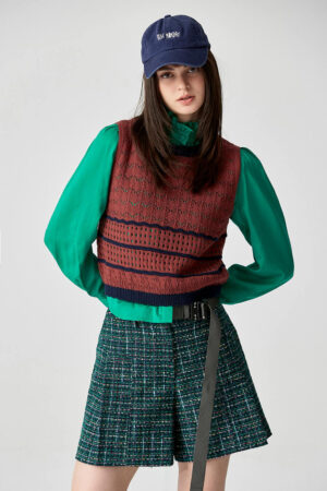 醉夢千秋簍空圓領針織背心 - 耀眼赤紅, 38