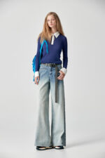 靜夜寒星漸層刷色牛仔寬褲 - 清新蔚藍, 38