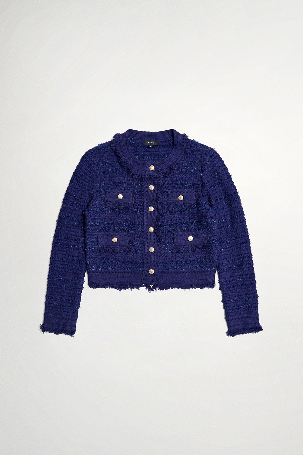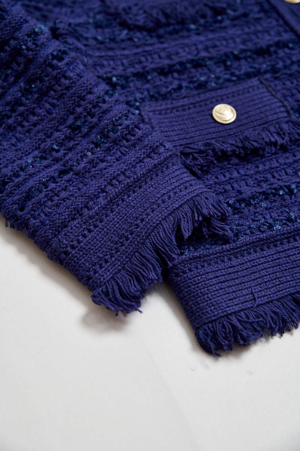 繁星藍閃流蘇感針織外套 - 深邃藏藍, 38