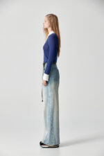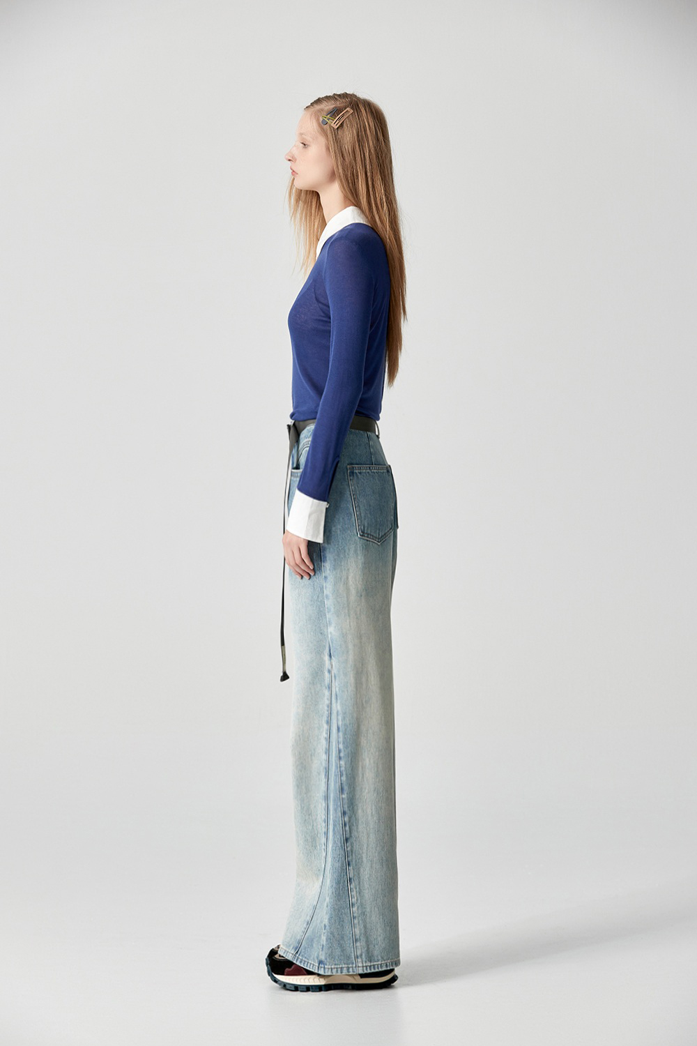 神秘藍紗配色修身上衣 - 深邃藏藍, 38