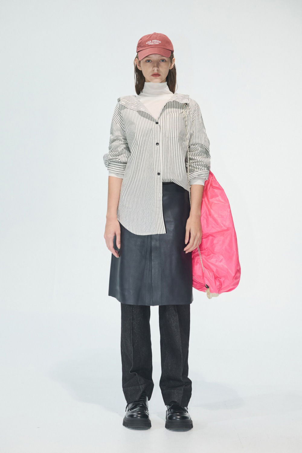 帥氣風度前後開岔皮裙