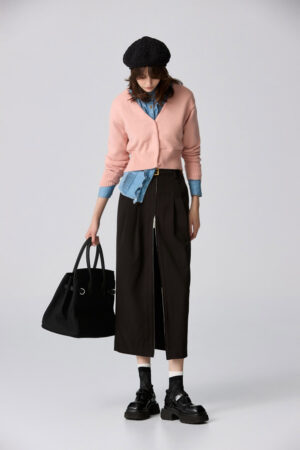 櫻花淡雅素面V領針織外套 - 古典藕粉, F