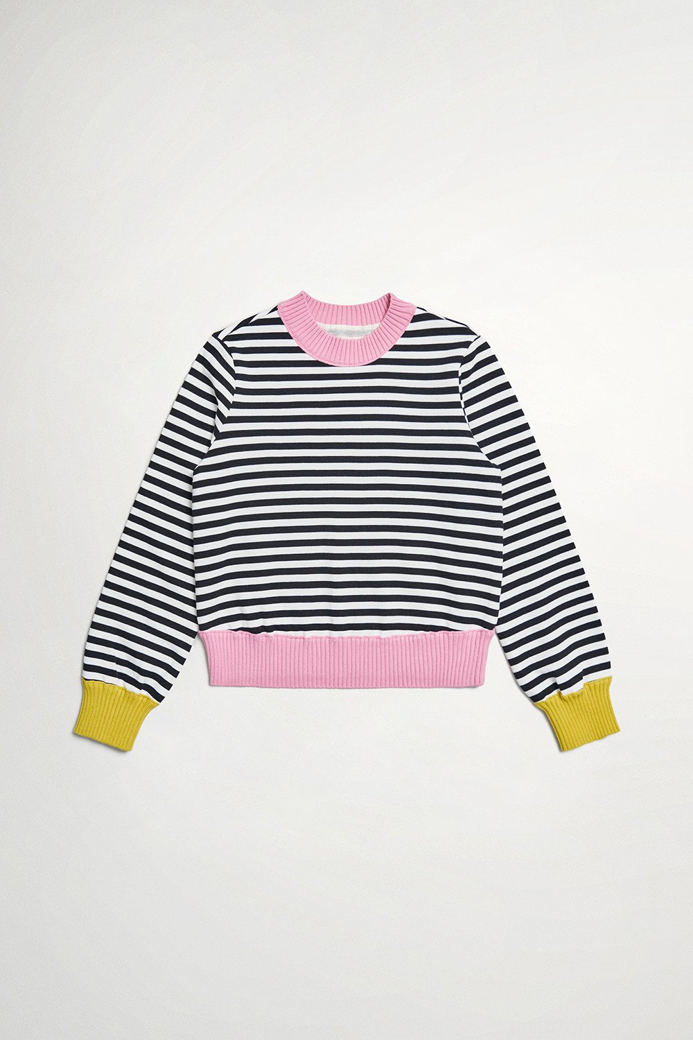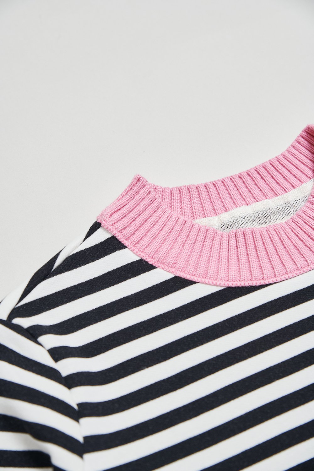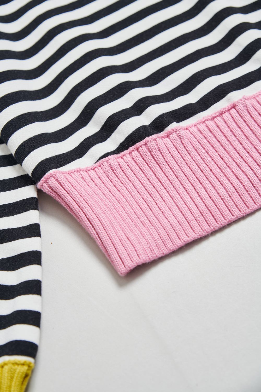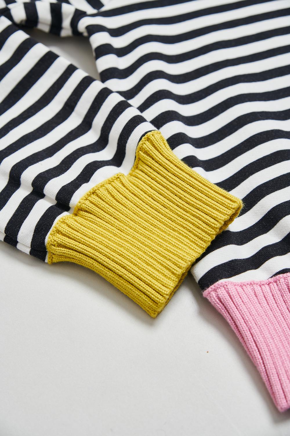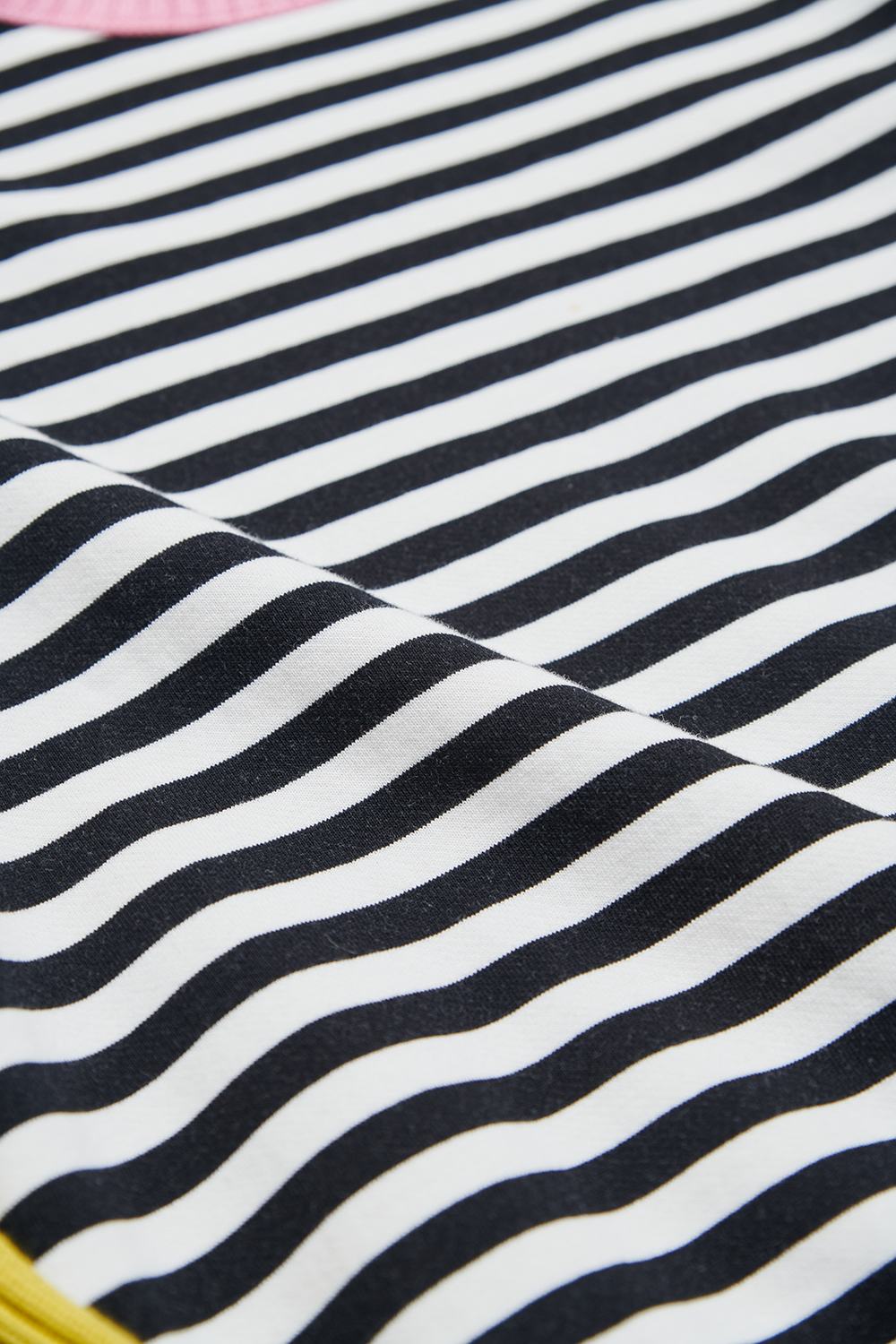 條印交融配色羅紋條紋上衣 - 黑白條紋, 36