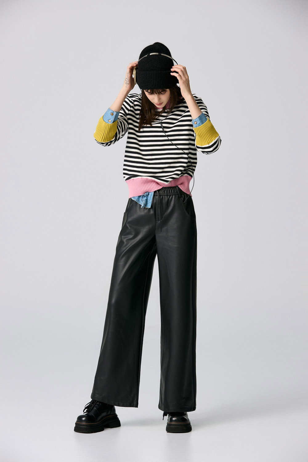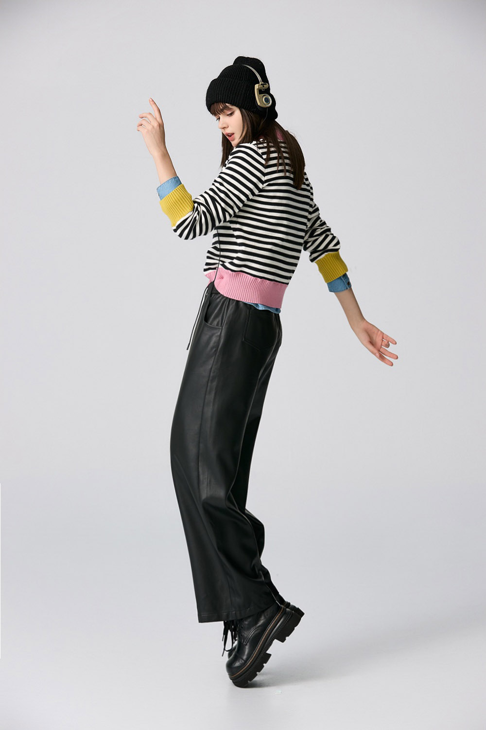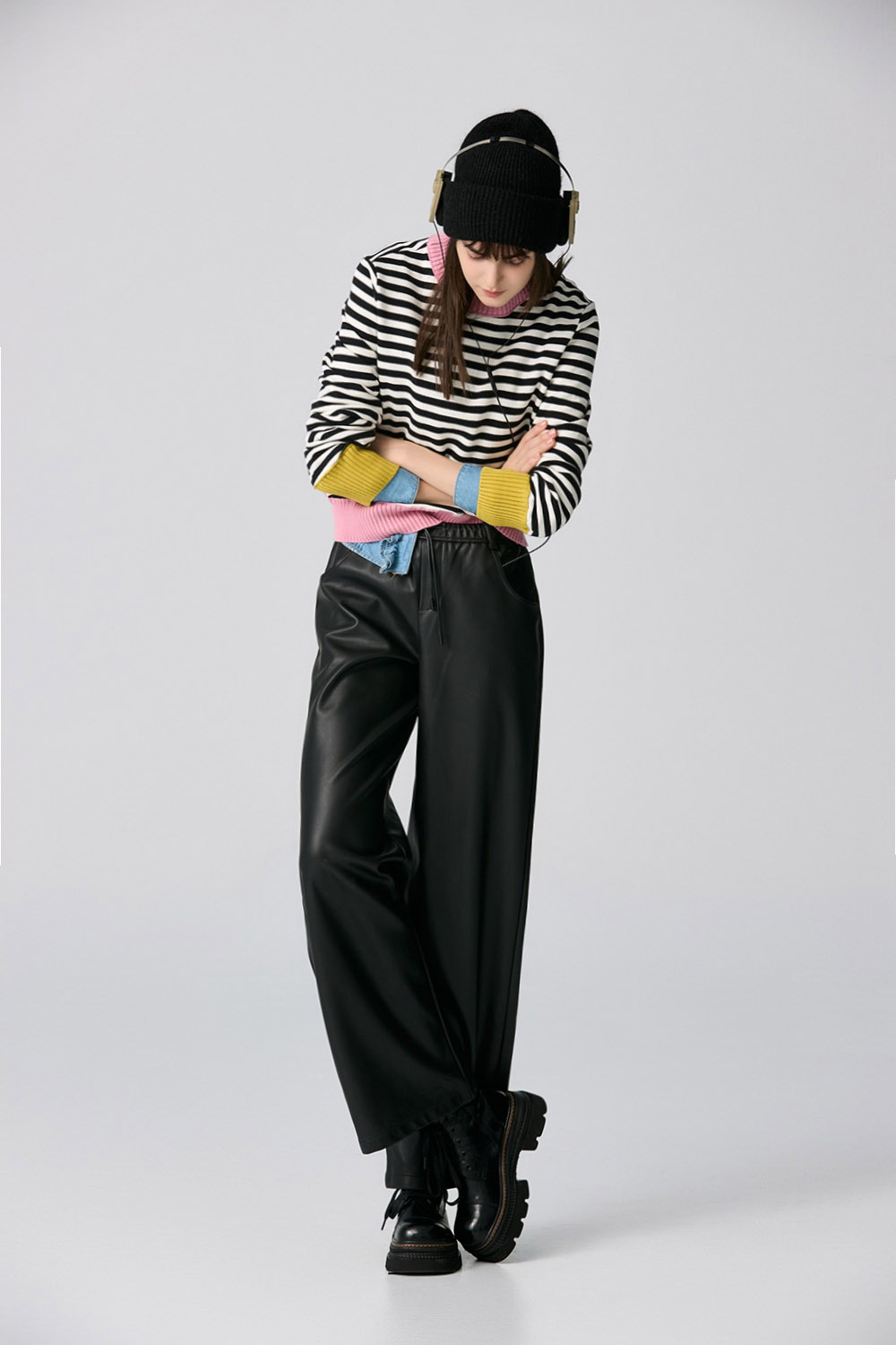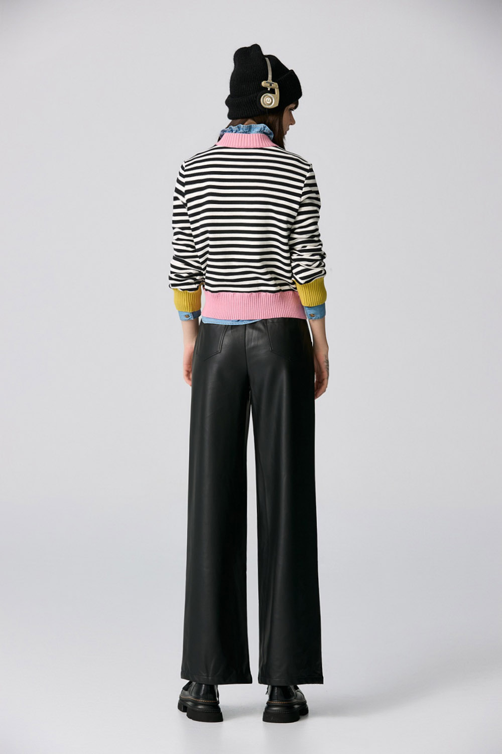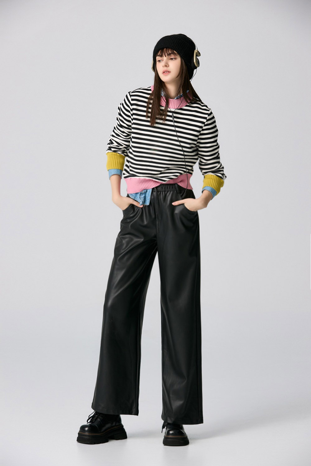 條印交融配色羅紋條紋上衣 - 黑白條紋, 36