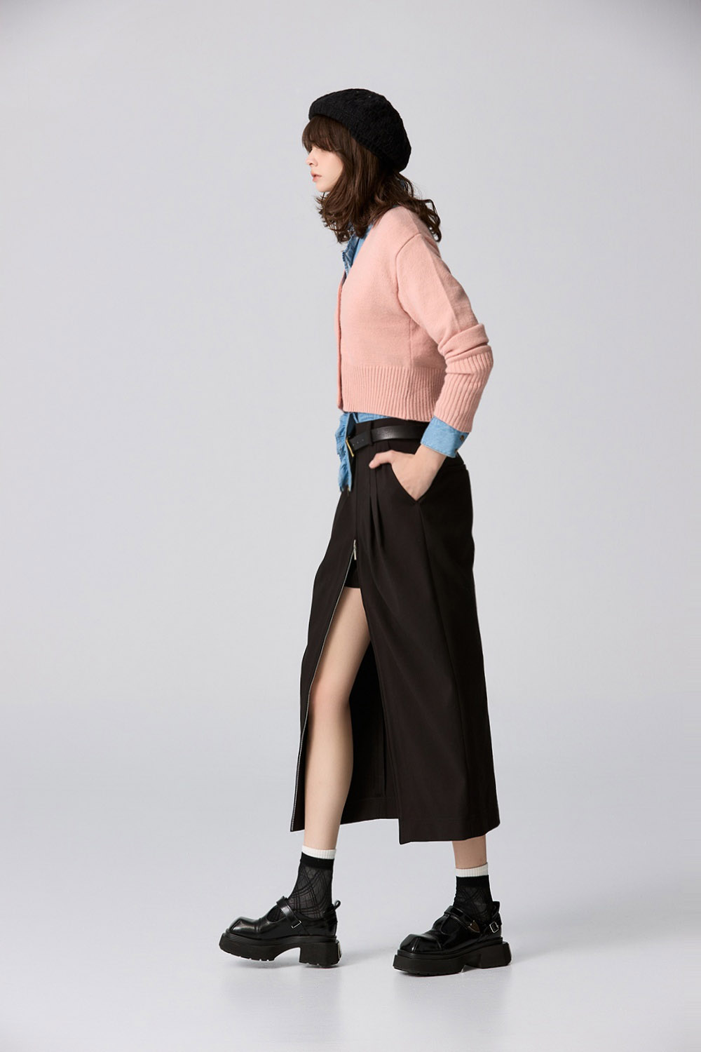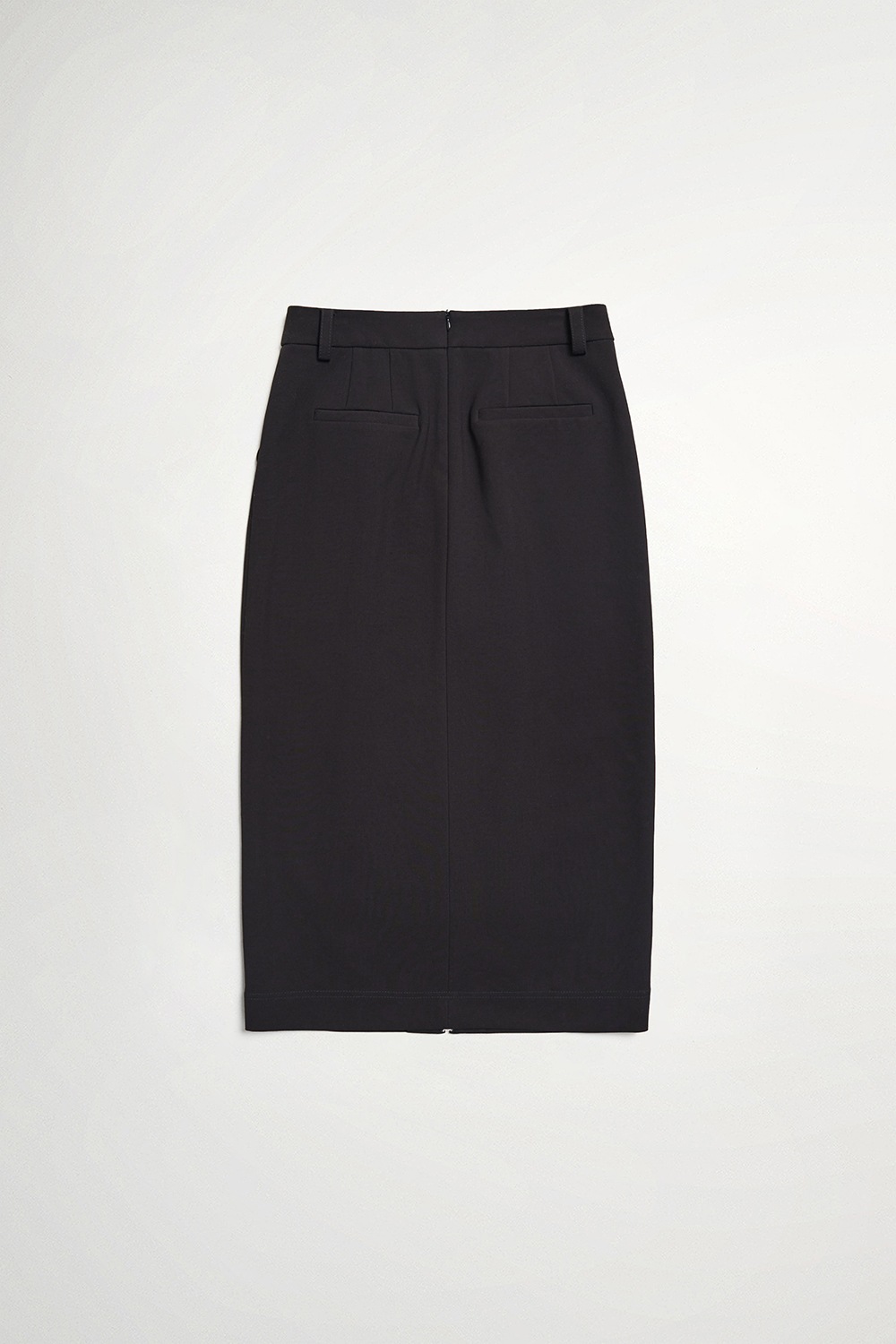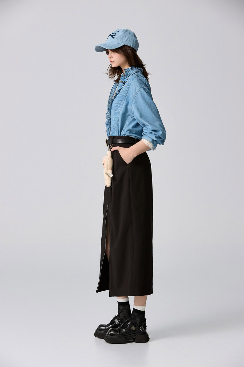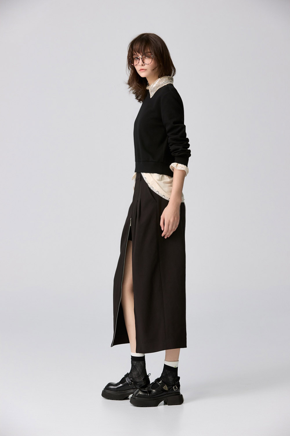簡約高貴拉鍊式開衩長裙 - 神祕純黑, 36