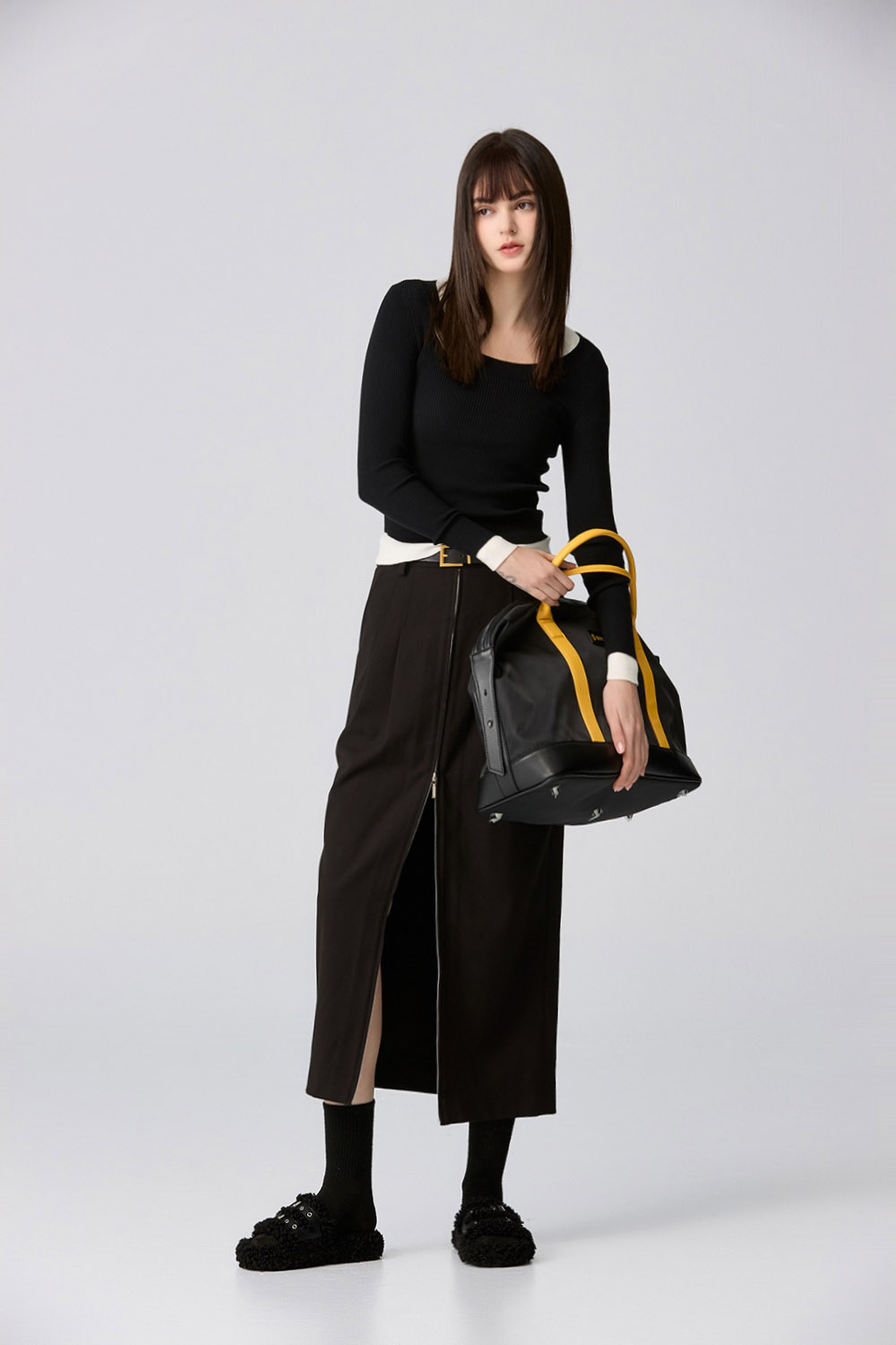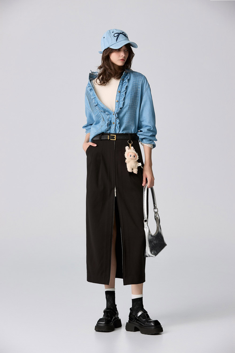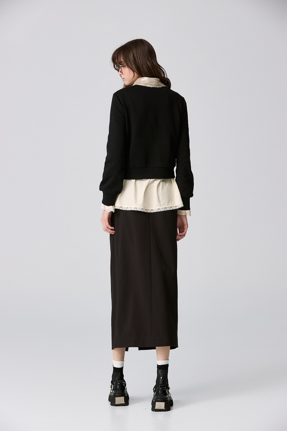 簡約高貴拉鍊式開衩長裙 - 神祕純黑, 36