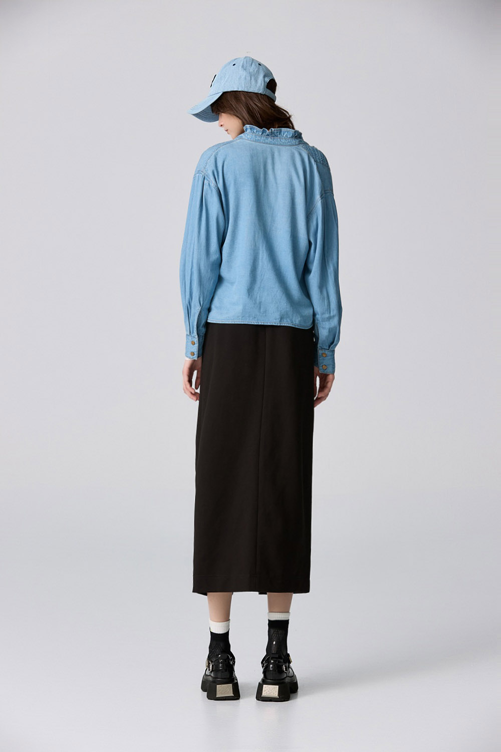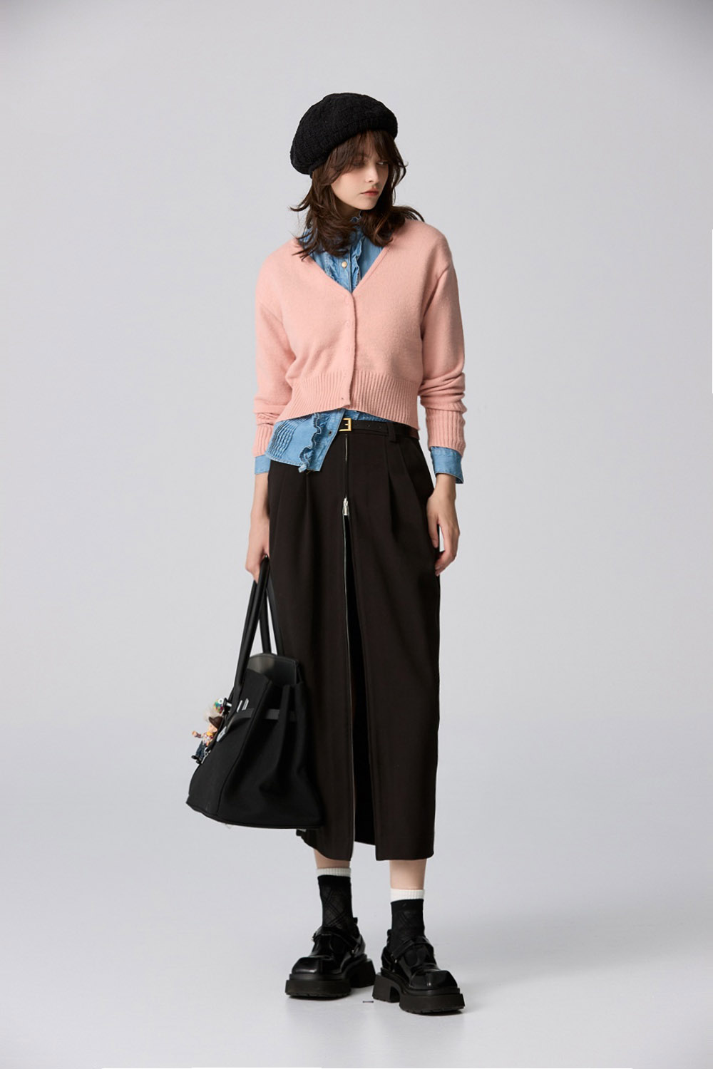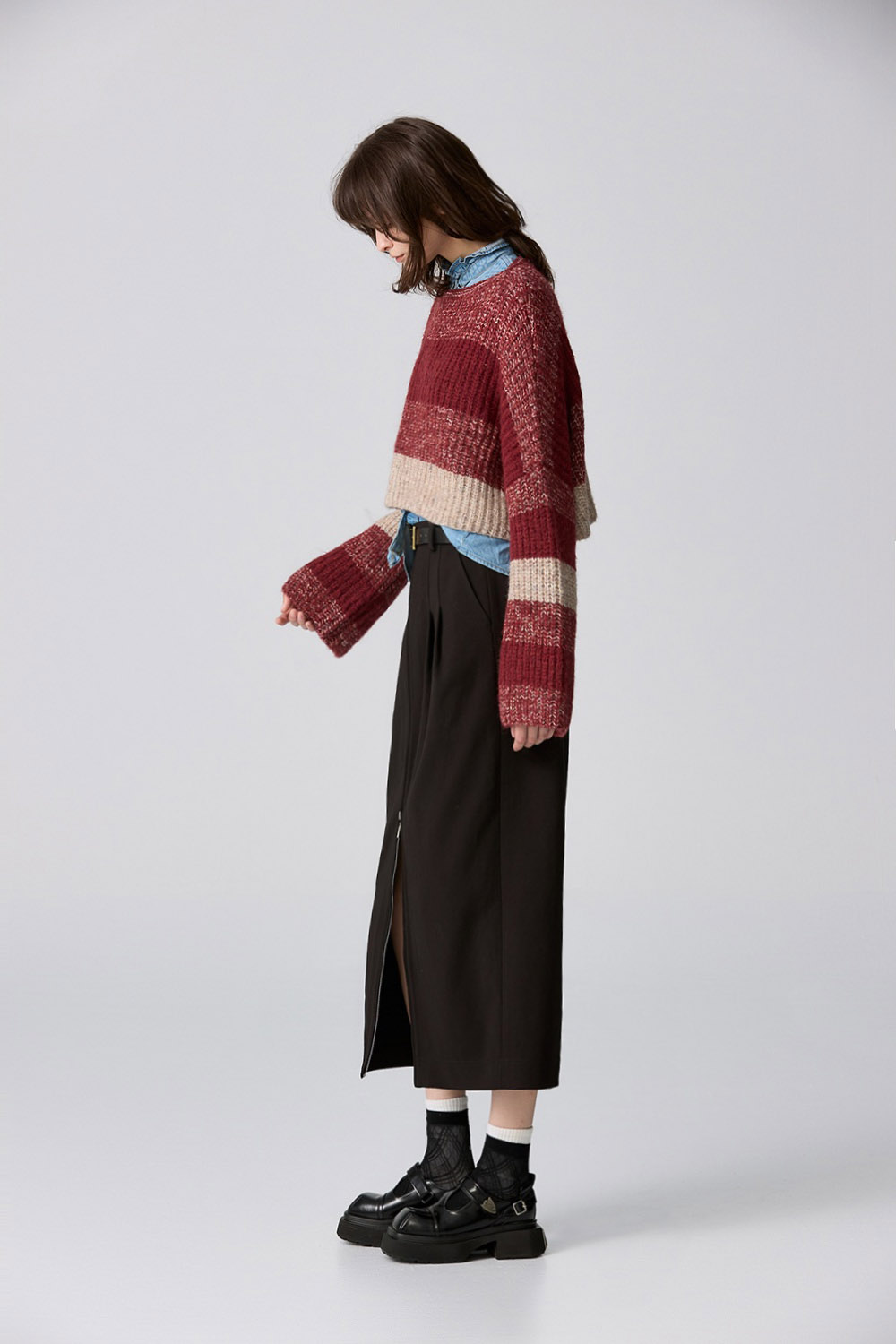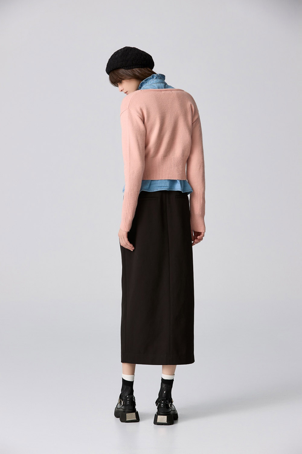 簡約高貴拉鍊式開衩長裙 - 神祕純黑, 36