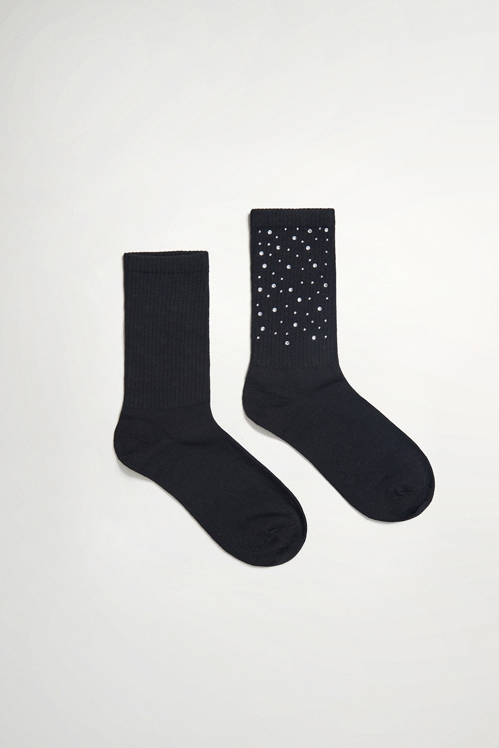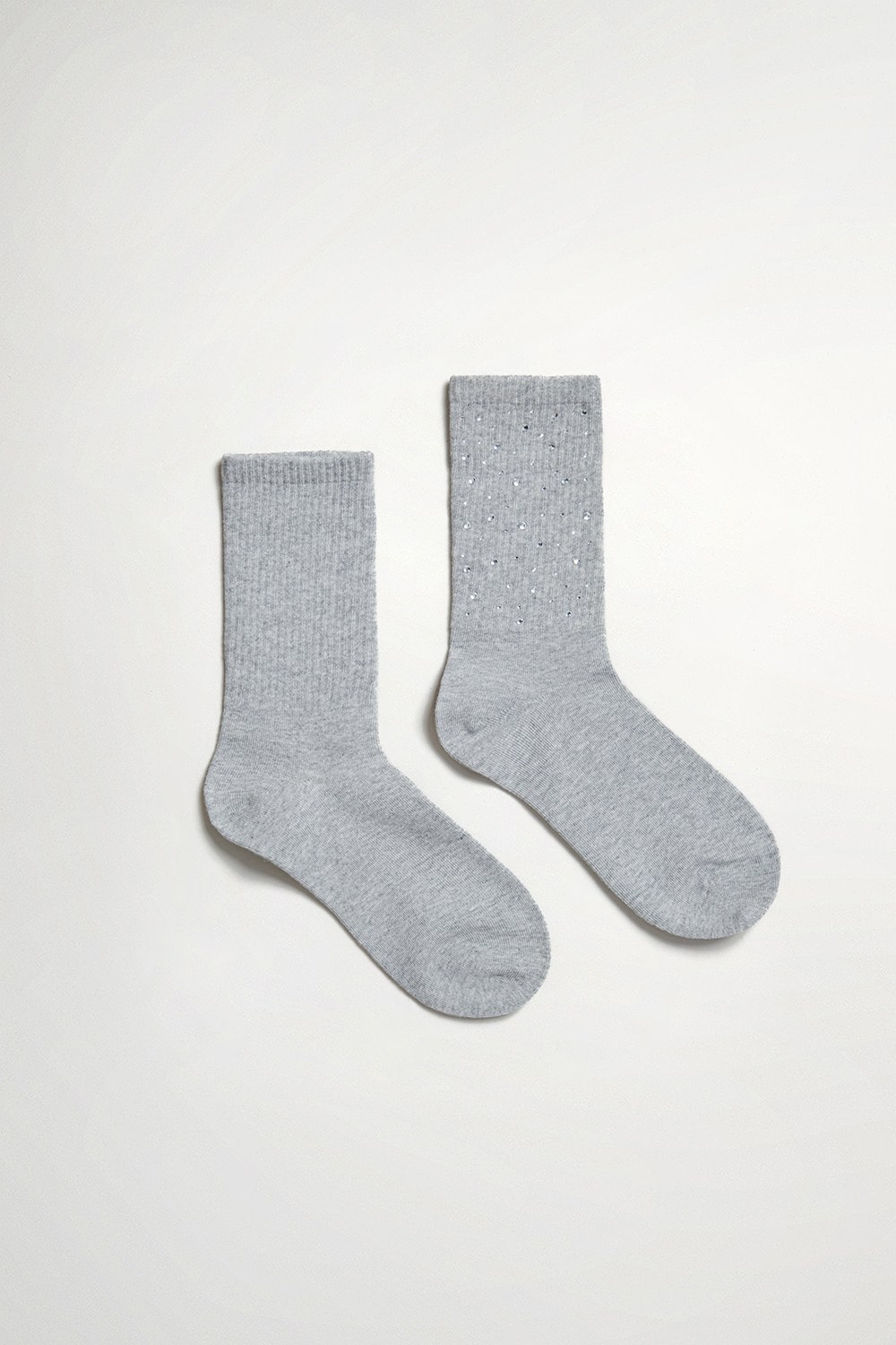 滿天星燙鑽中筒襪 - 沉穩霧灰, F