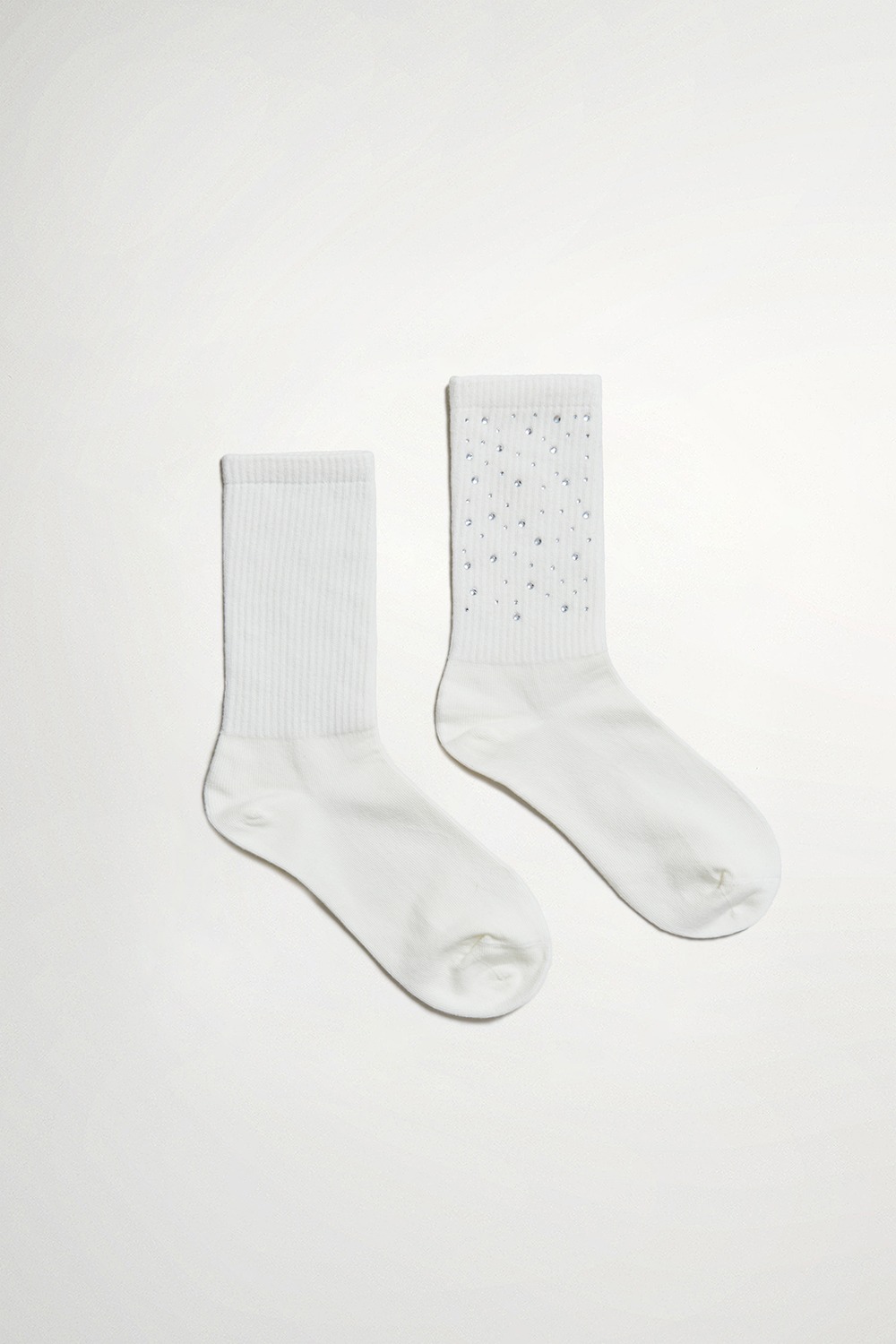 滿天星燙鑽中筒襪 - 無瑕純白, F