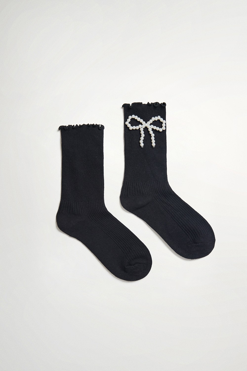 芭蕾舞珍珠蝴蝶結中筒襪 - 神祕純黑, F