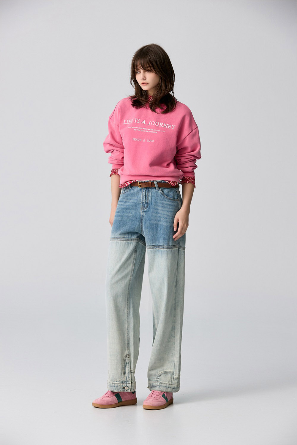 曙光微粉字母繡休閒上衣 - 微施粉澤, 38