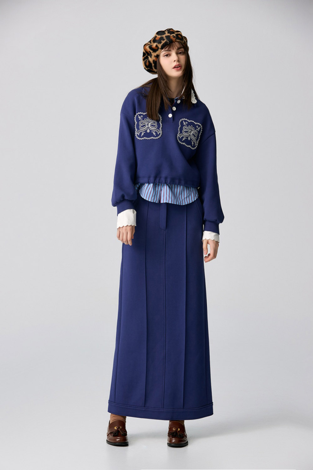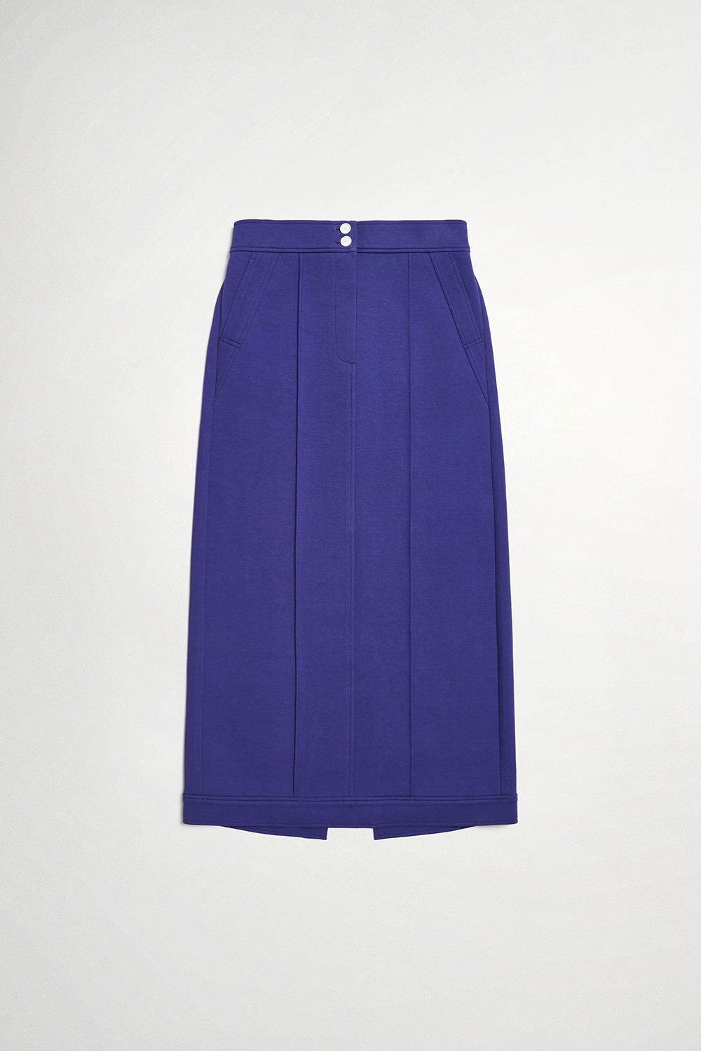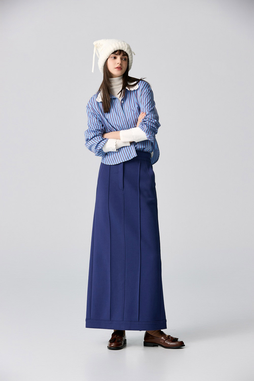 海藍澄淨剪接休閒長裙 - 深邃藏藍, 36
