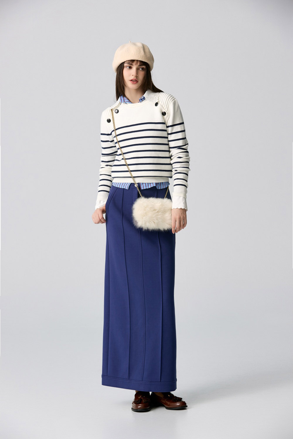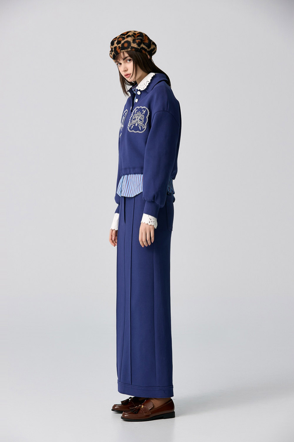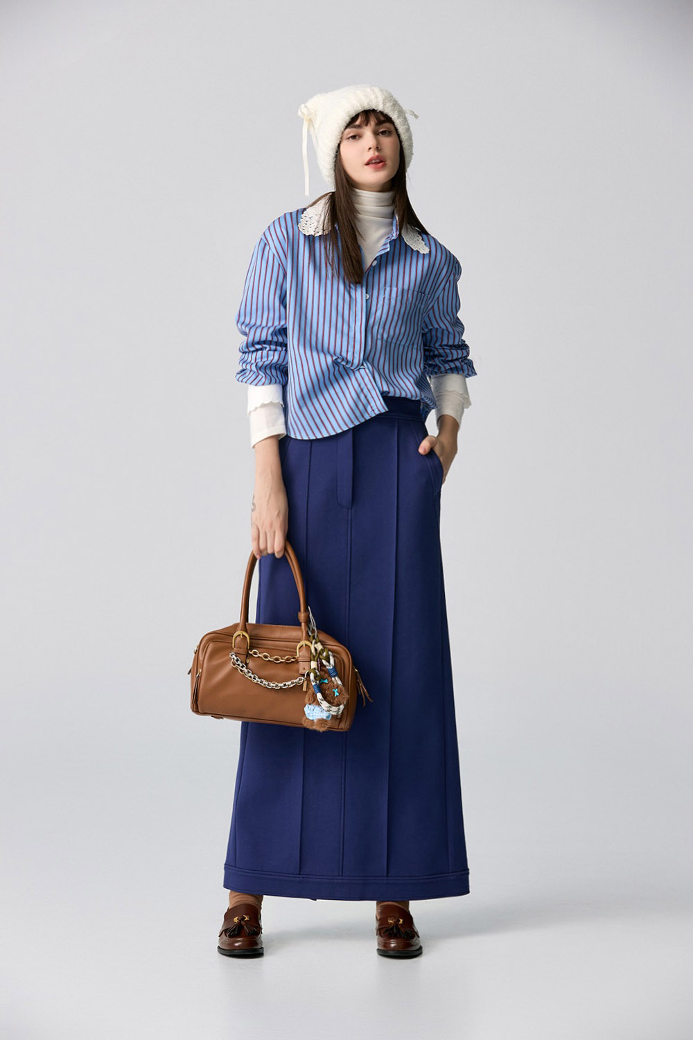 海藍澄淨剪接休閒長裙 - 深邃藏藍, 36