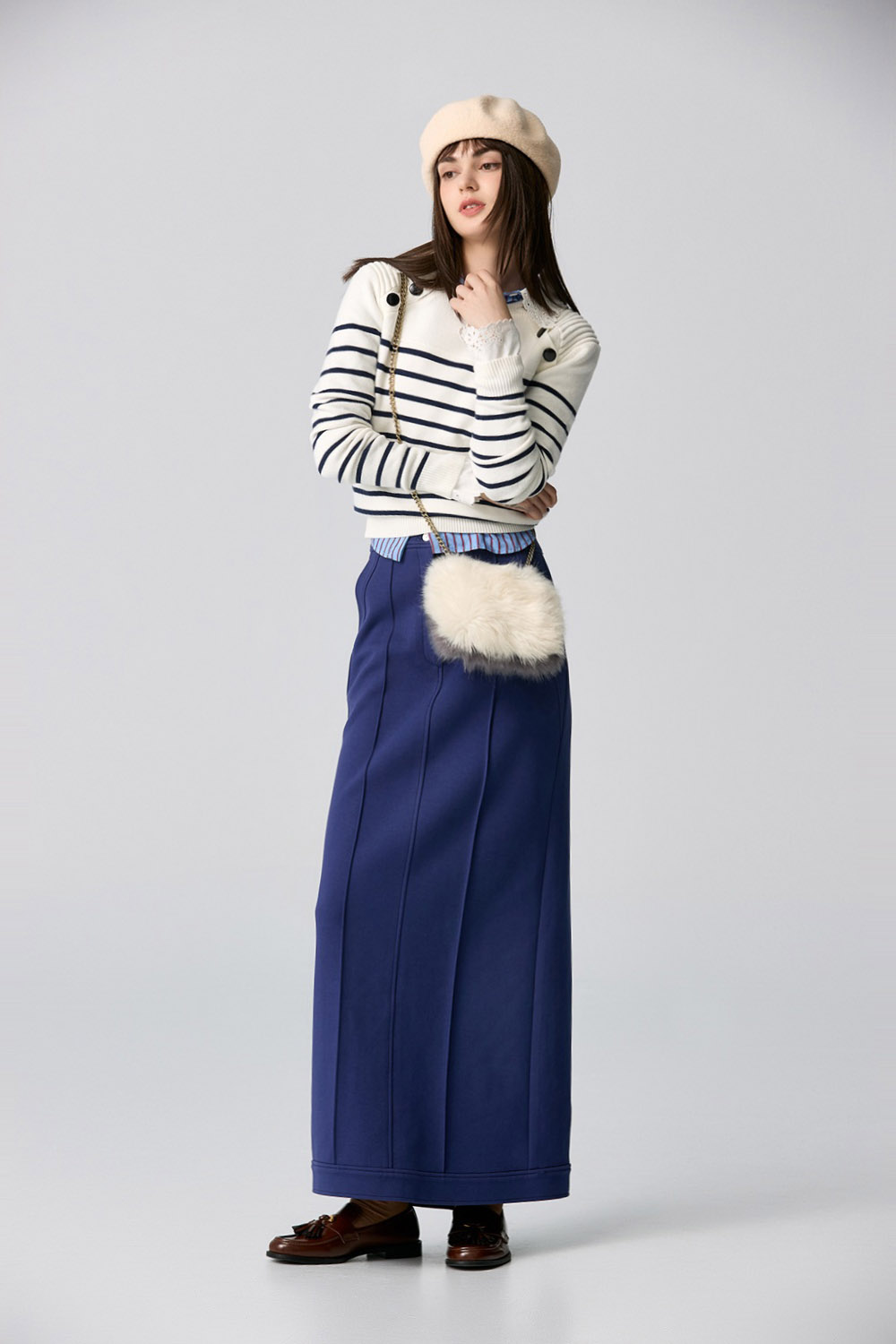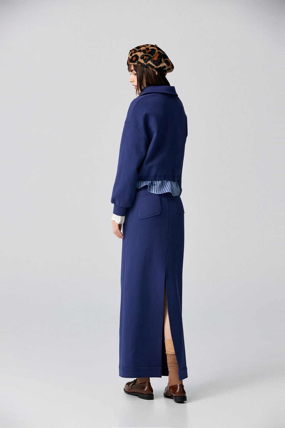 海藍澄淨剪接休閒長裙 - 深邃藏藍, 38