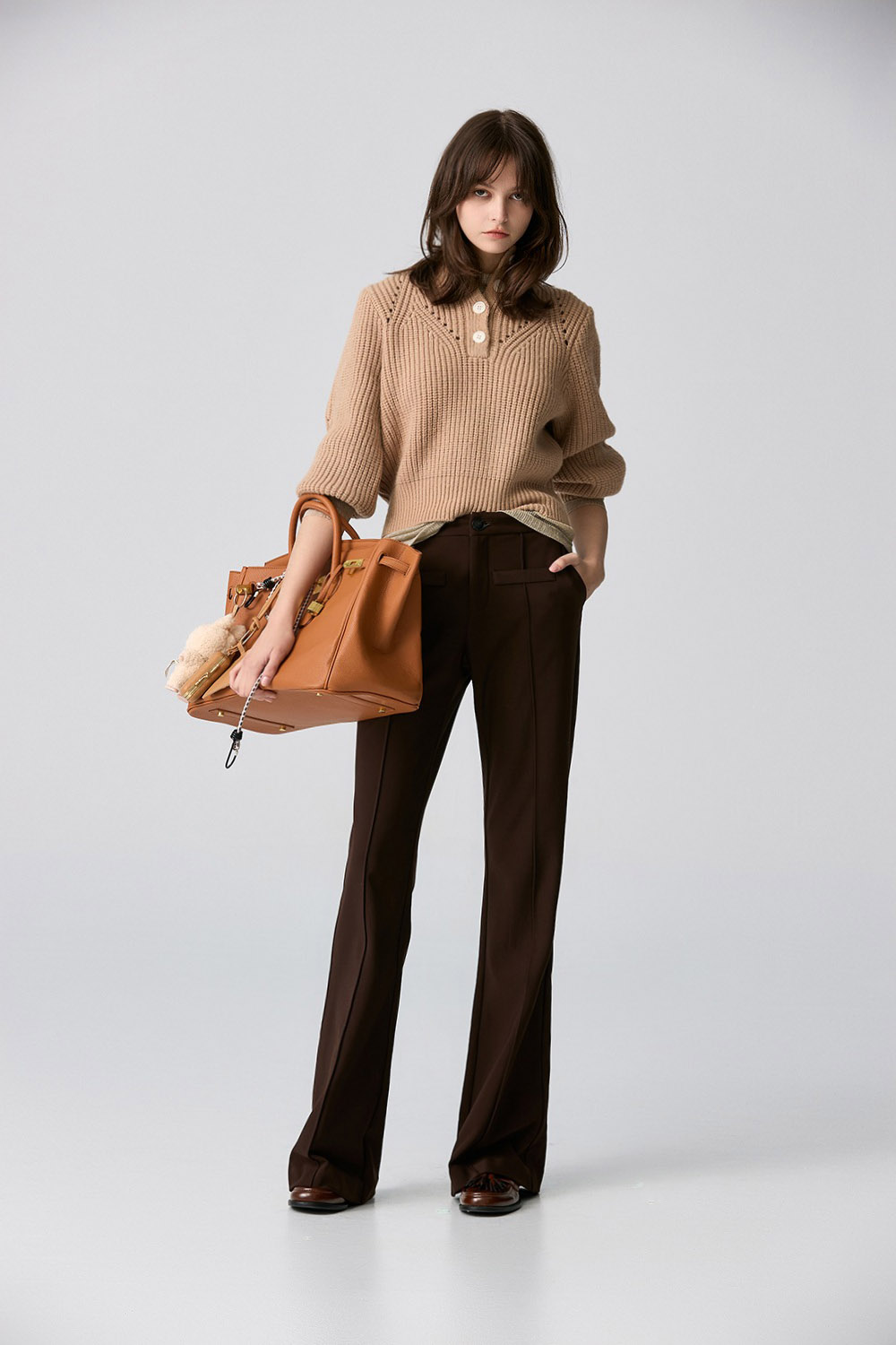 焦糖濃香修身小喇叭長褲 - 古樸咖啡, 38