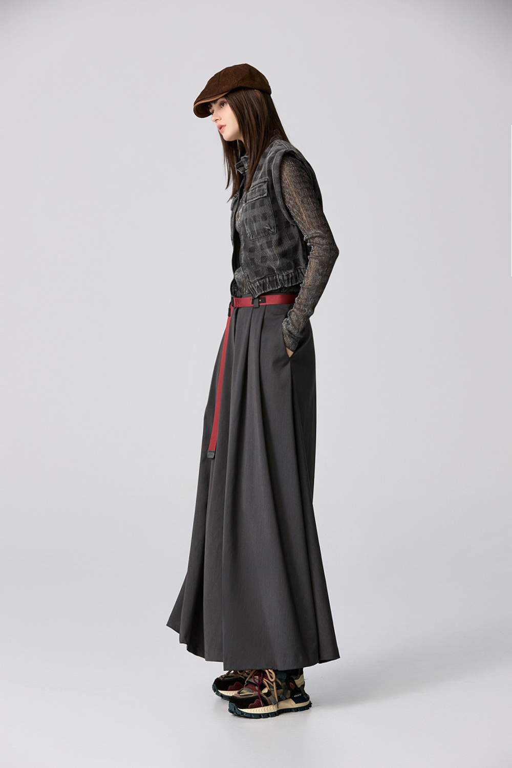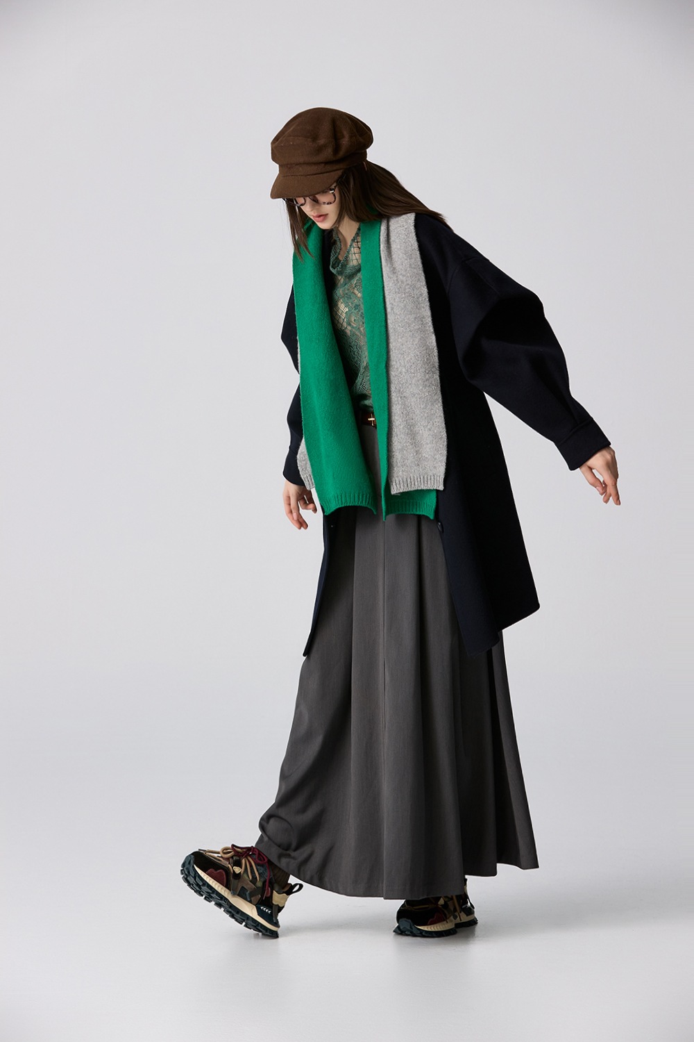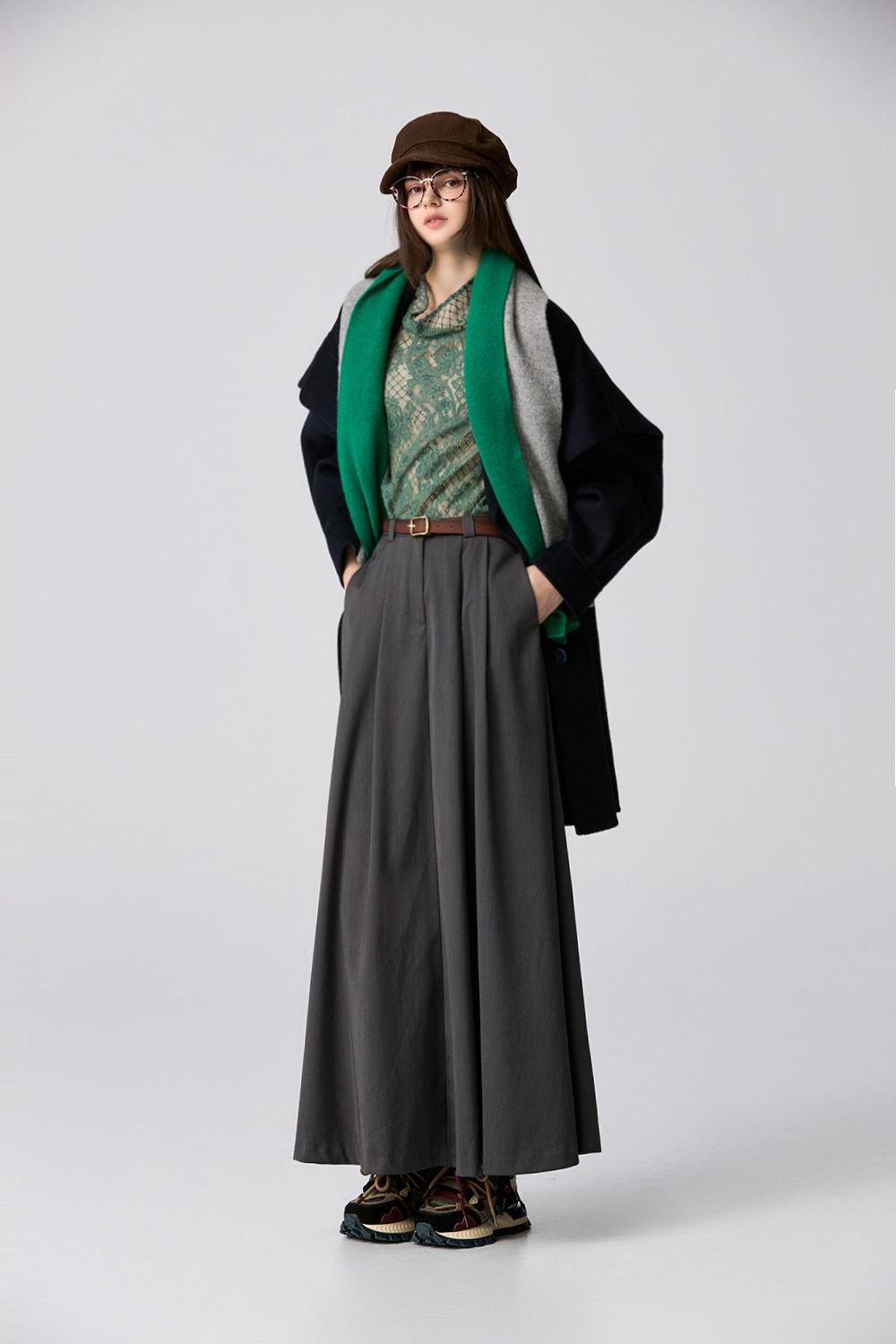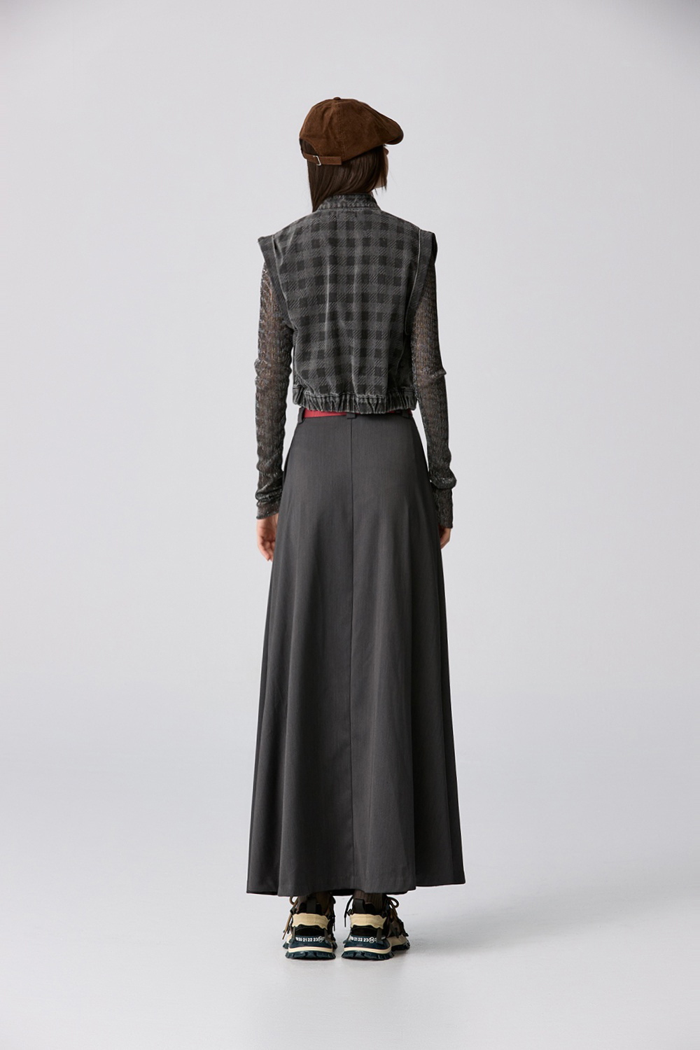 寬鬆舒適簡約抓褶裙 - 沉穩霧灰, 36