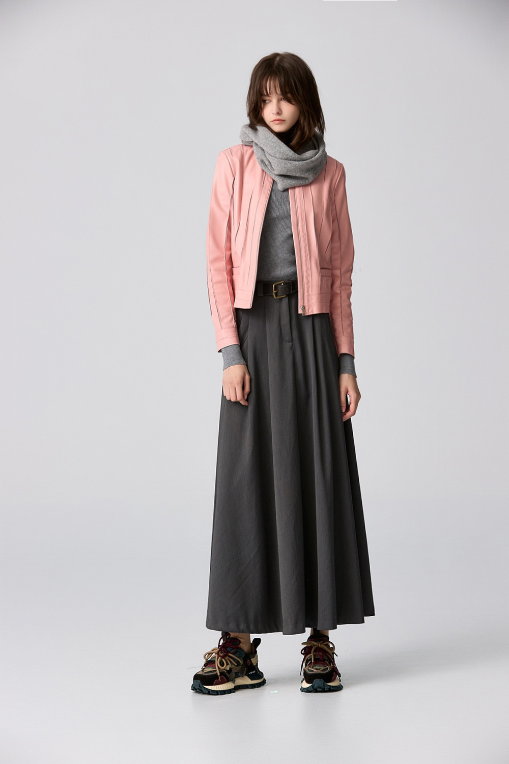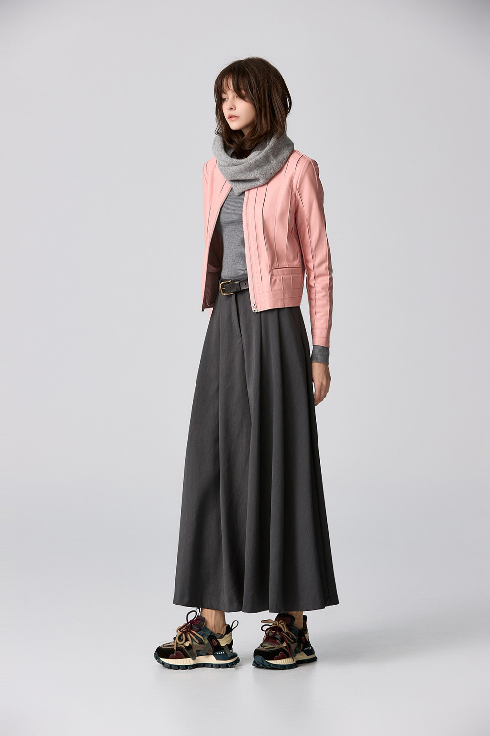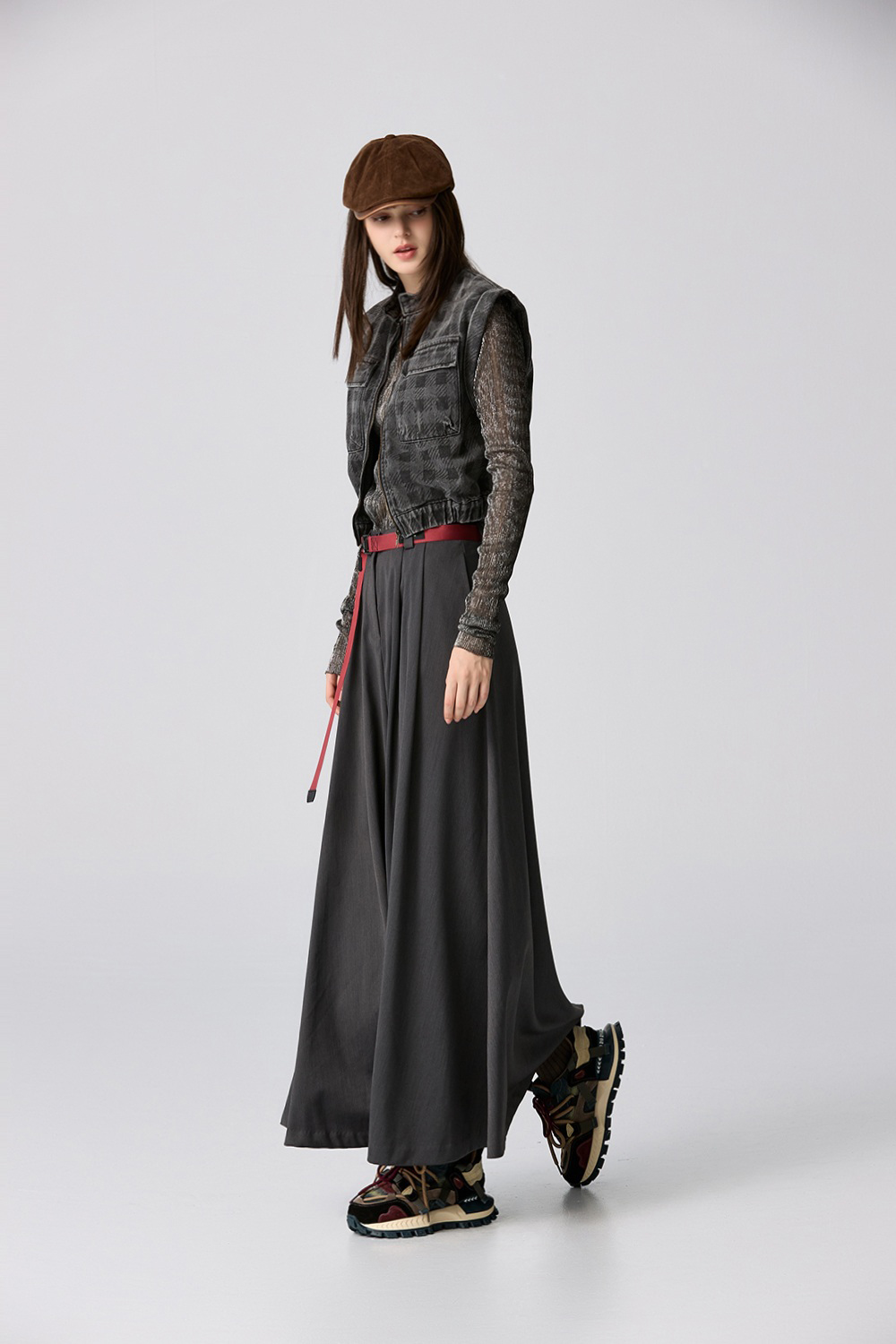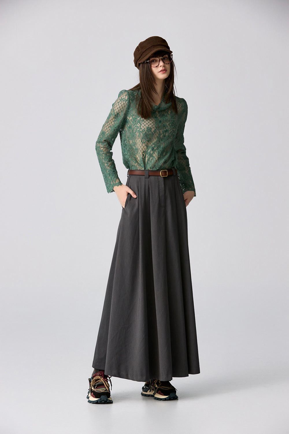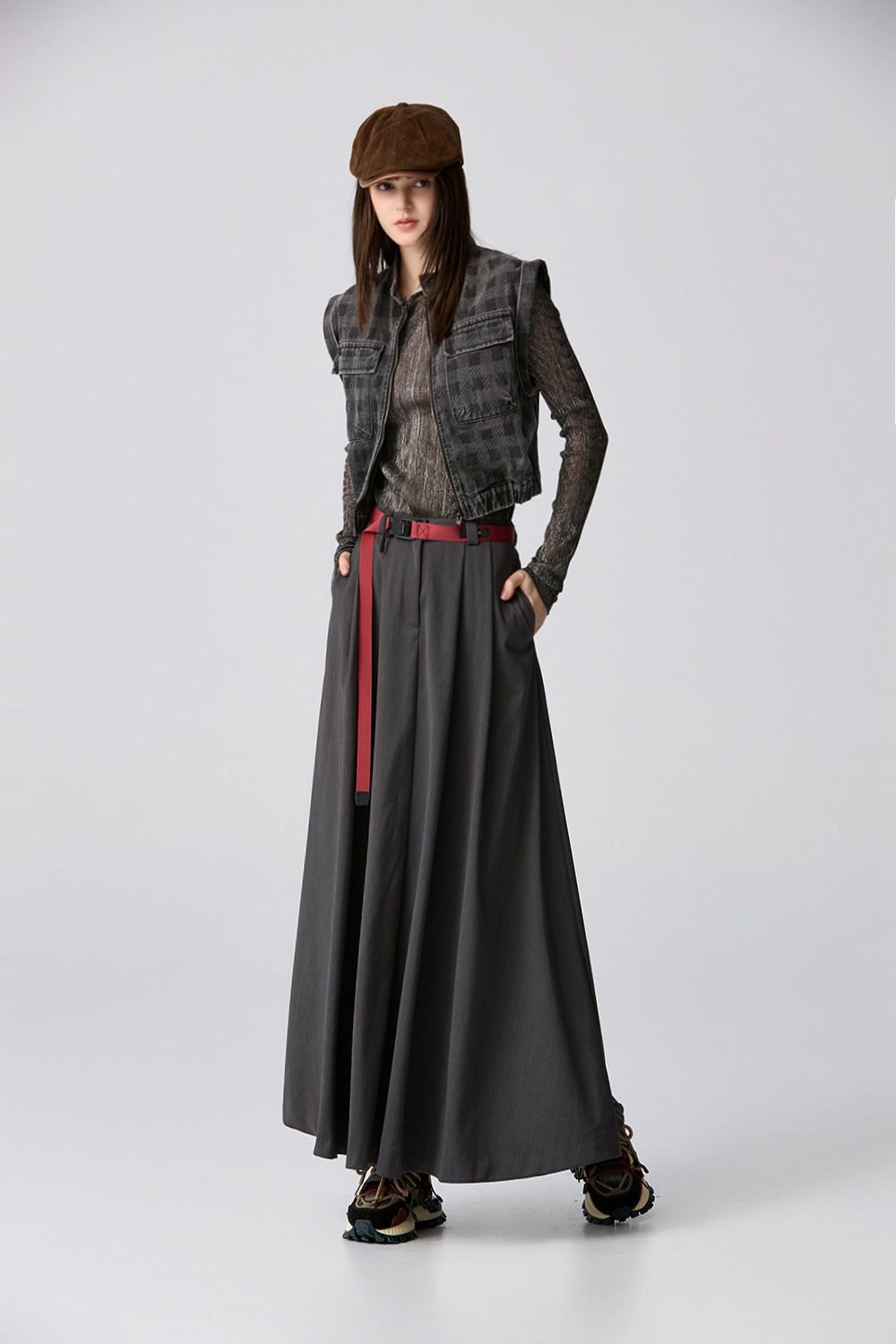 寬鬆舒適簡約抓褶裙 - 沉穩霧灰, 36