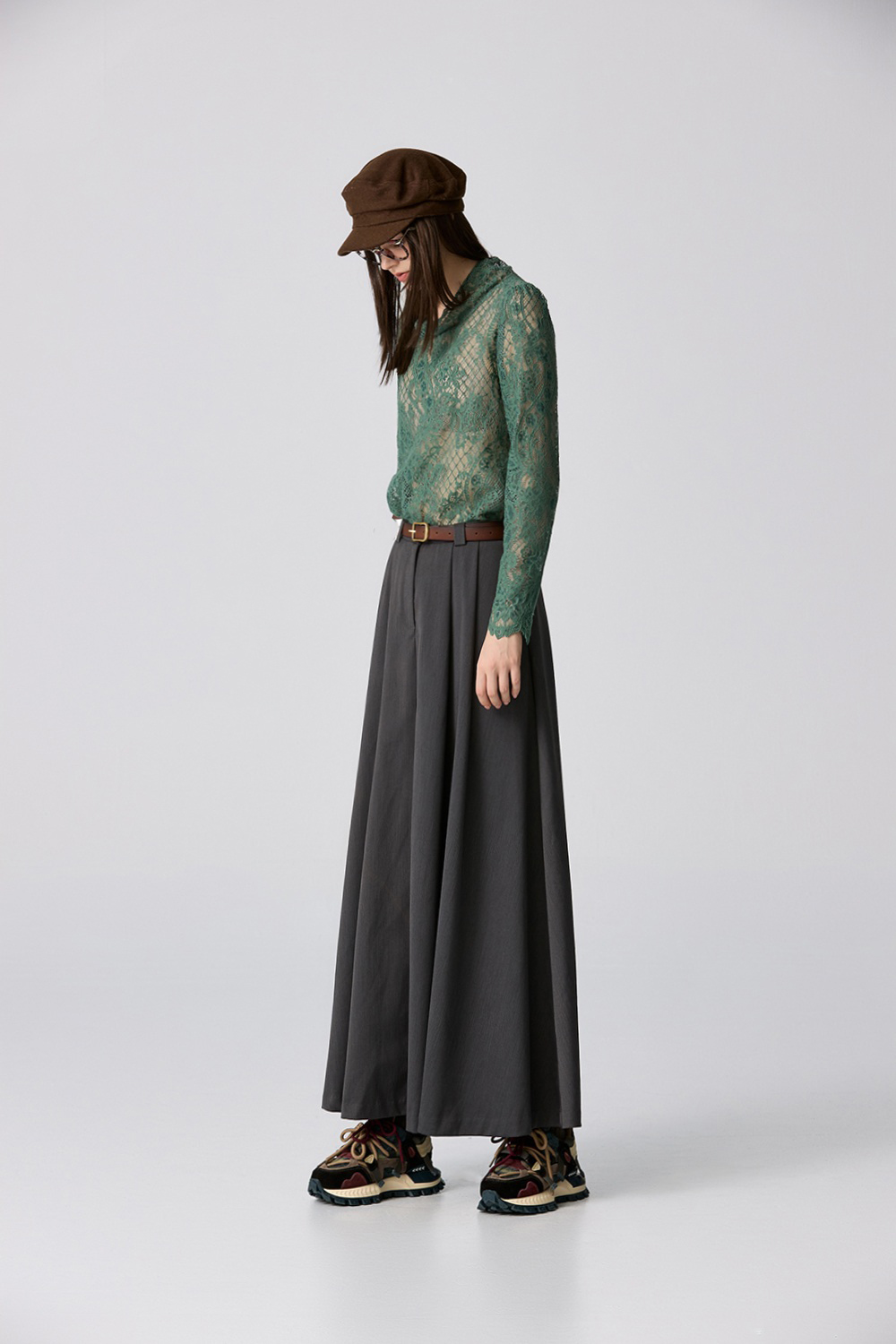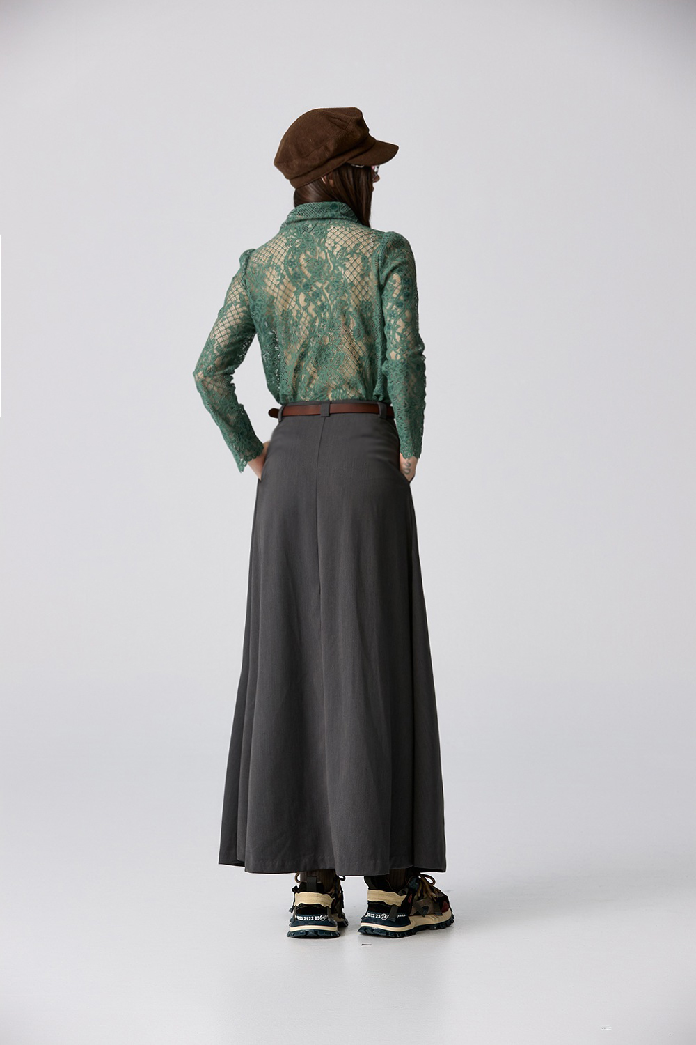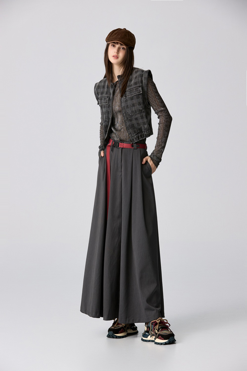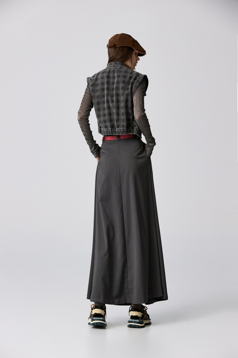 寬鬆舒適簡約抓褶裙 - 沉穩霧灰, 36