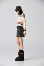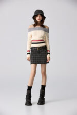 舊時經典一字領針織上衣 - 奶油杏色, 40