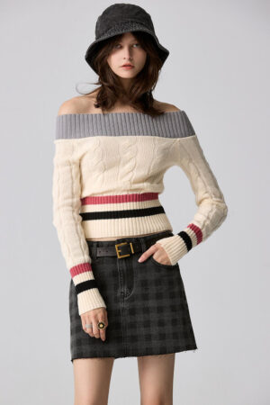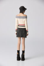 舊時經典一字領針織上衣 - 奶油杏色, 38