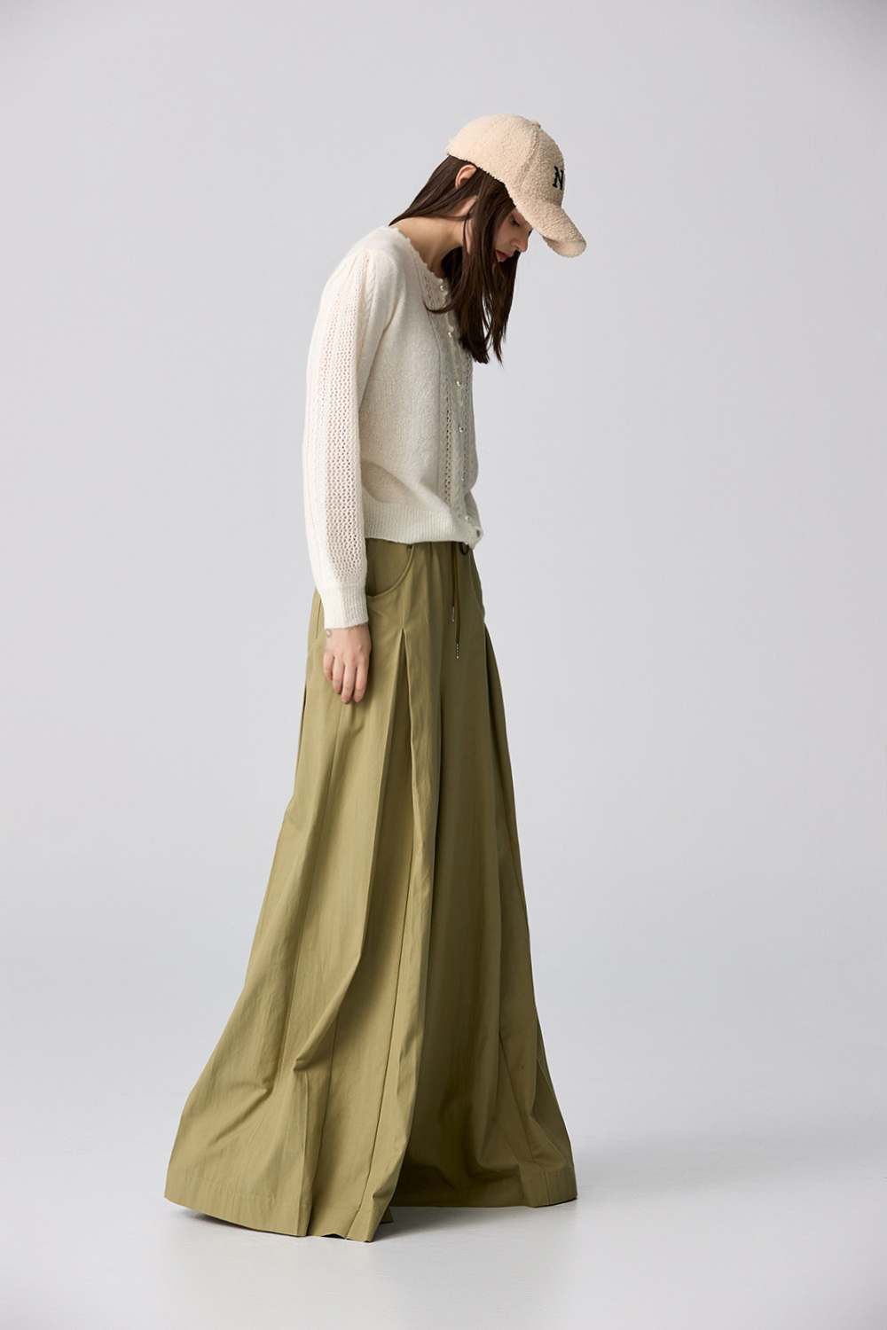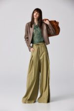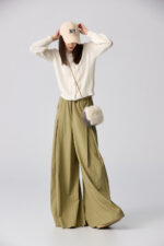 奢華復古質感開衩寬褲 - 夢幻灰綠, 40