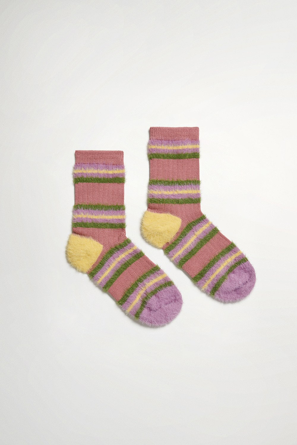 / 配色彩條毛毛中筒襪 (卡其 / 粉 / 咖 )