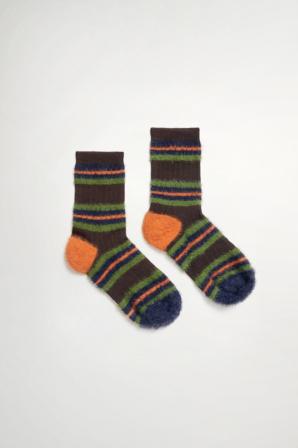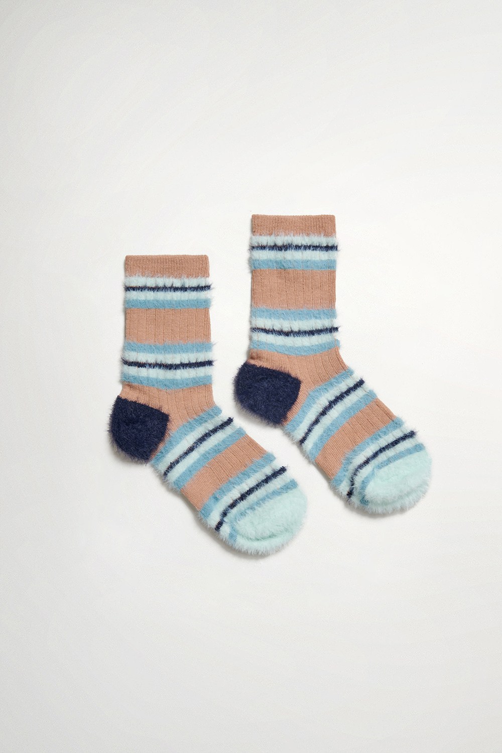 配色彩條毛毛中筒襪 (卡其 / 粉 / 咖 )