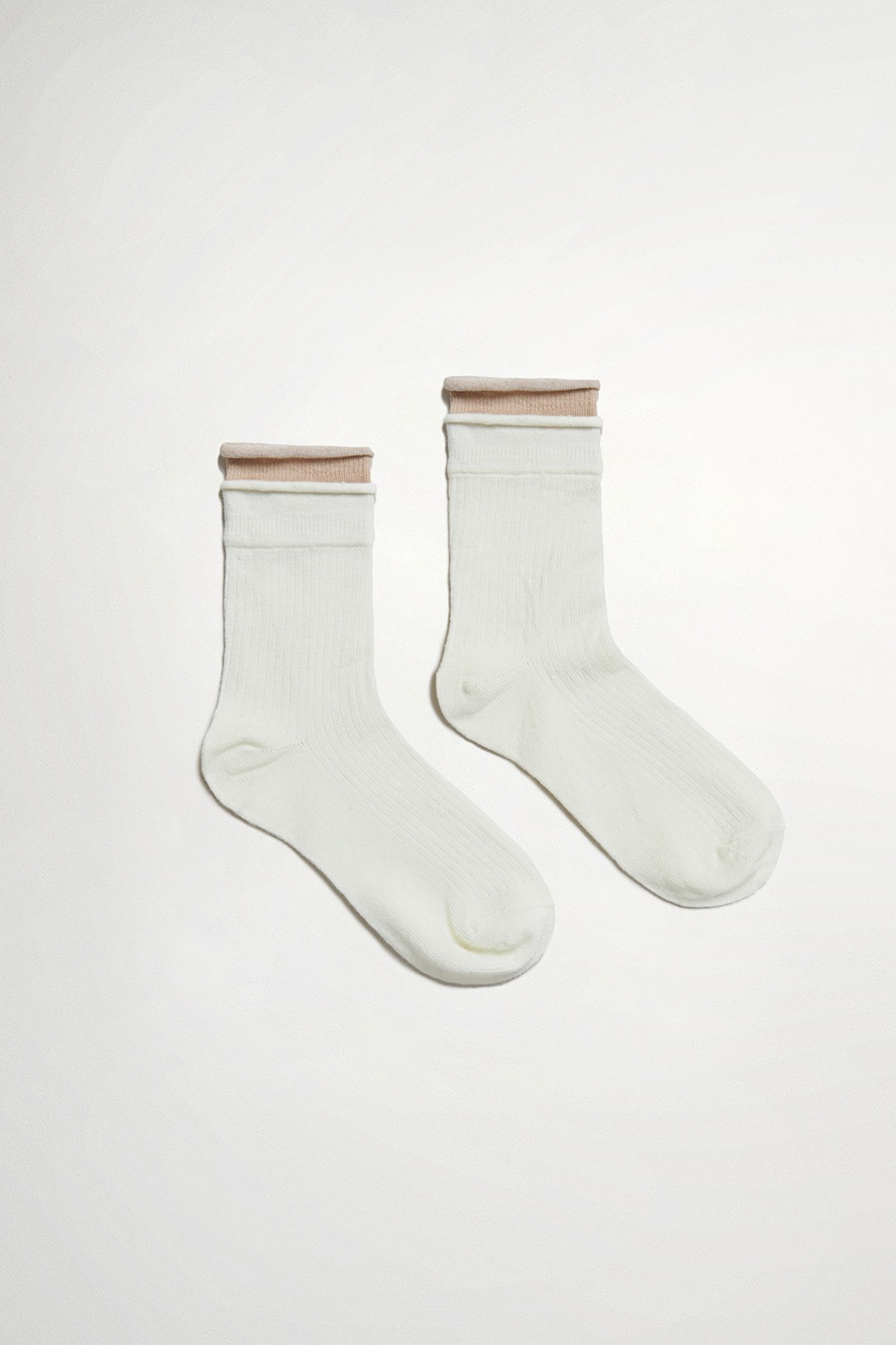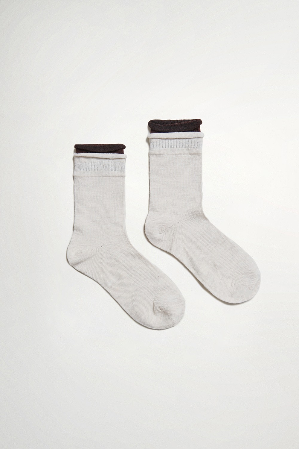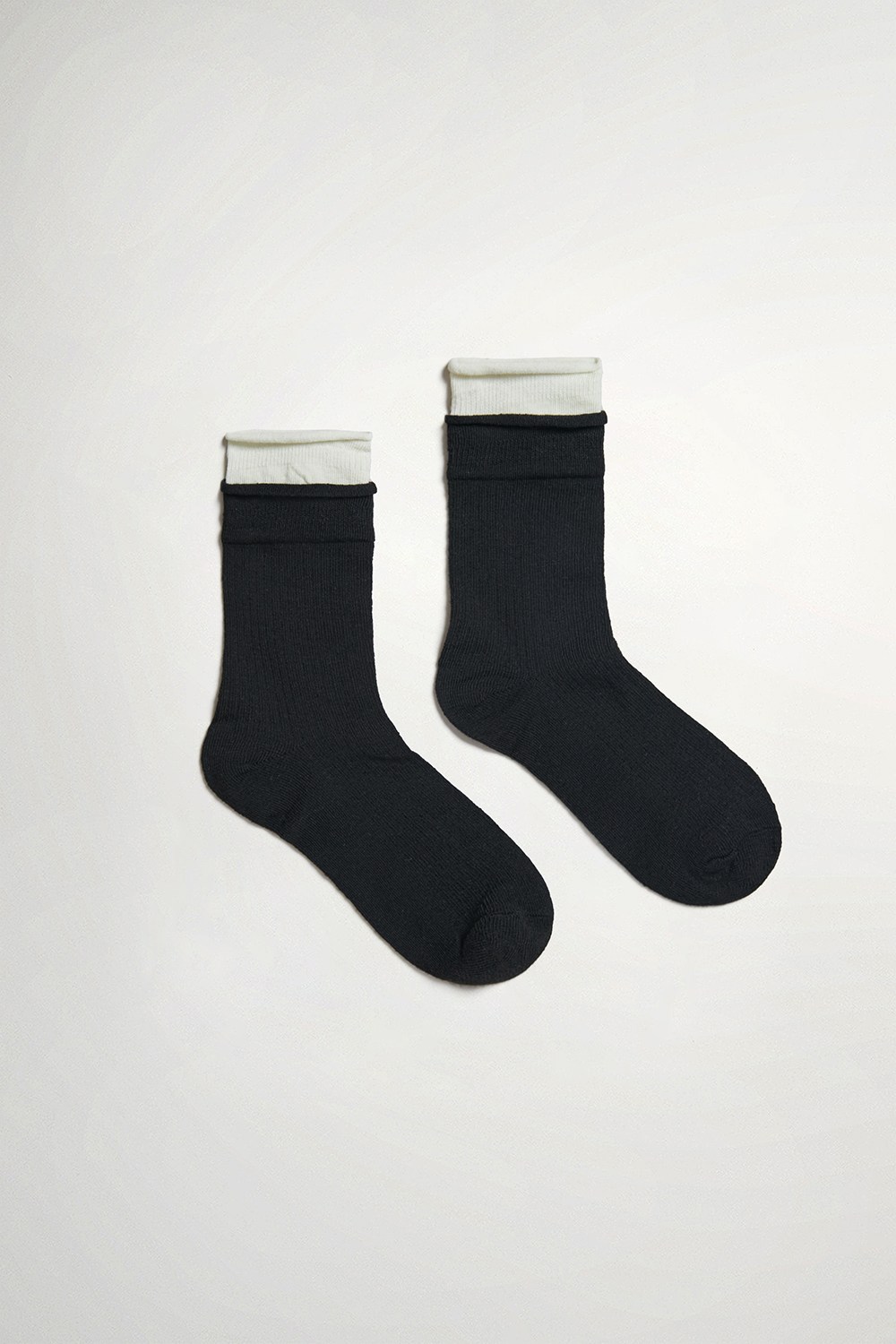 / 暖冬撞色捲邊中筒襪 ( 黑 / 白 / 米 )