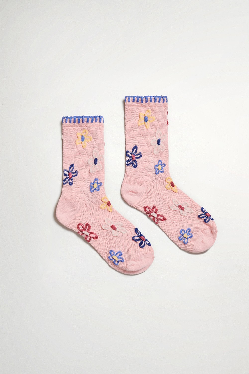 心花朵朵開中筒襪 ( 粉 / 米 / 藍 ) - 微施粉澤, F