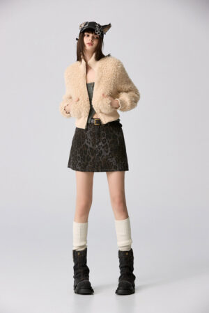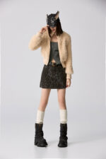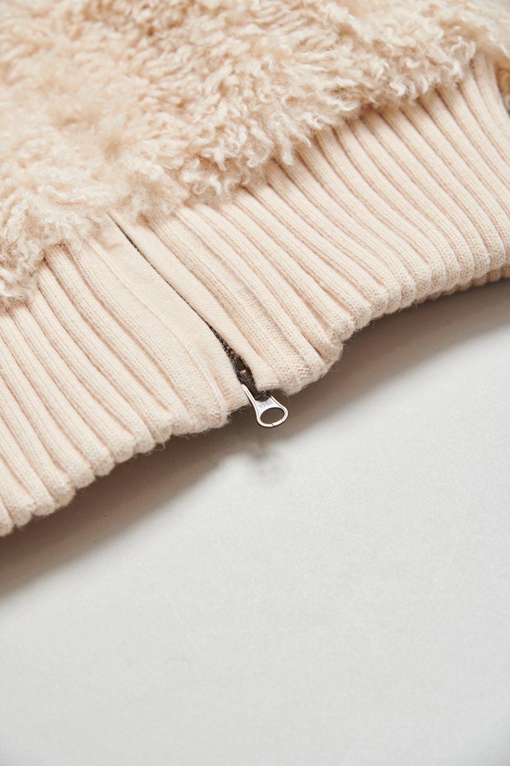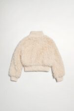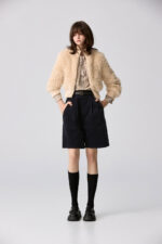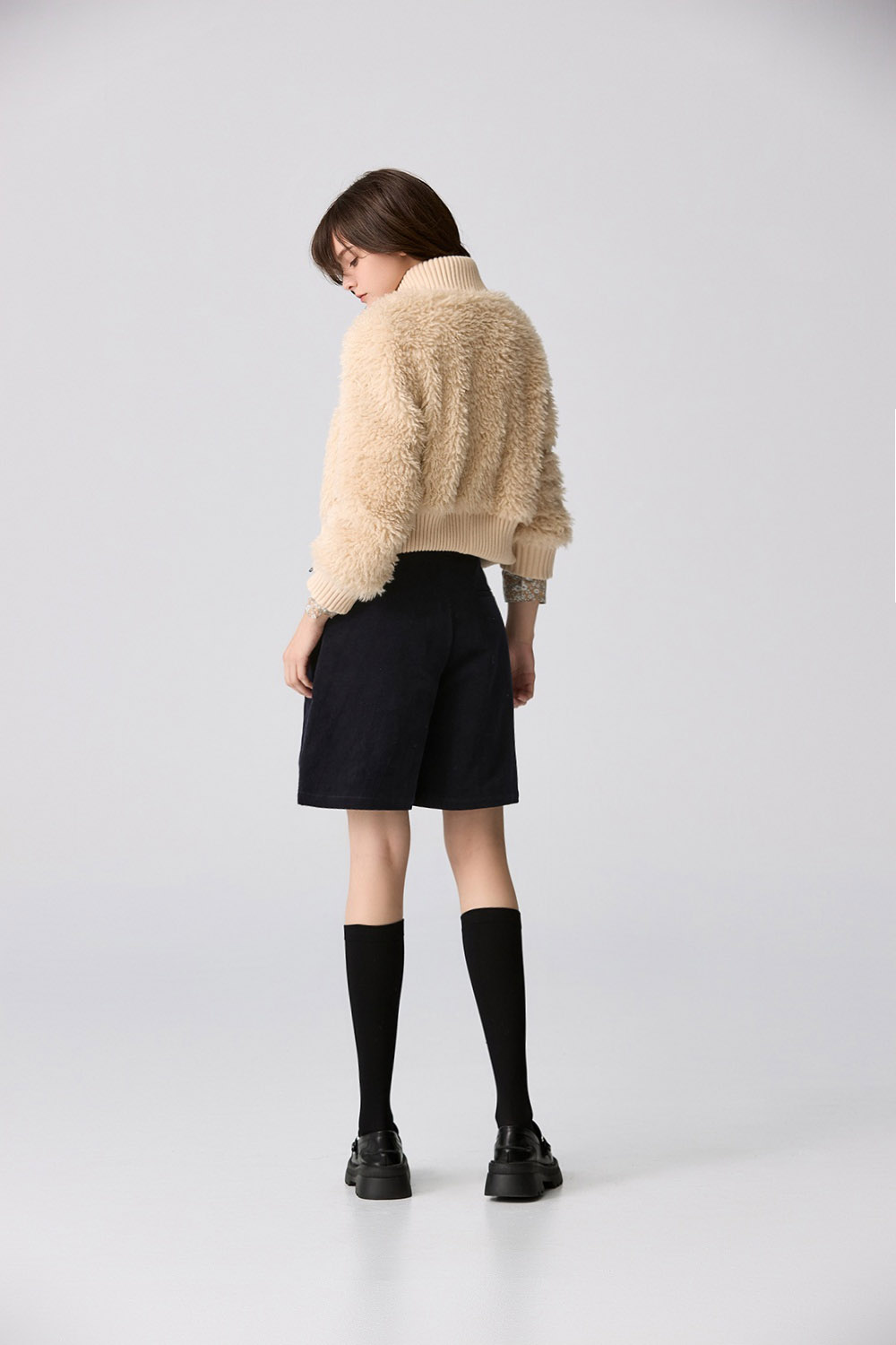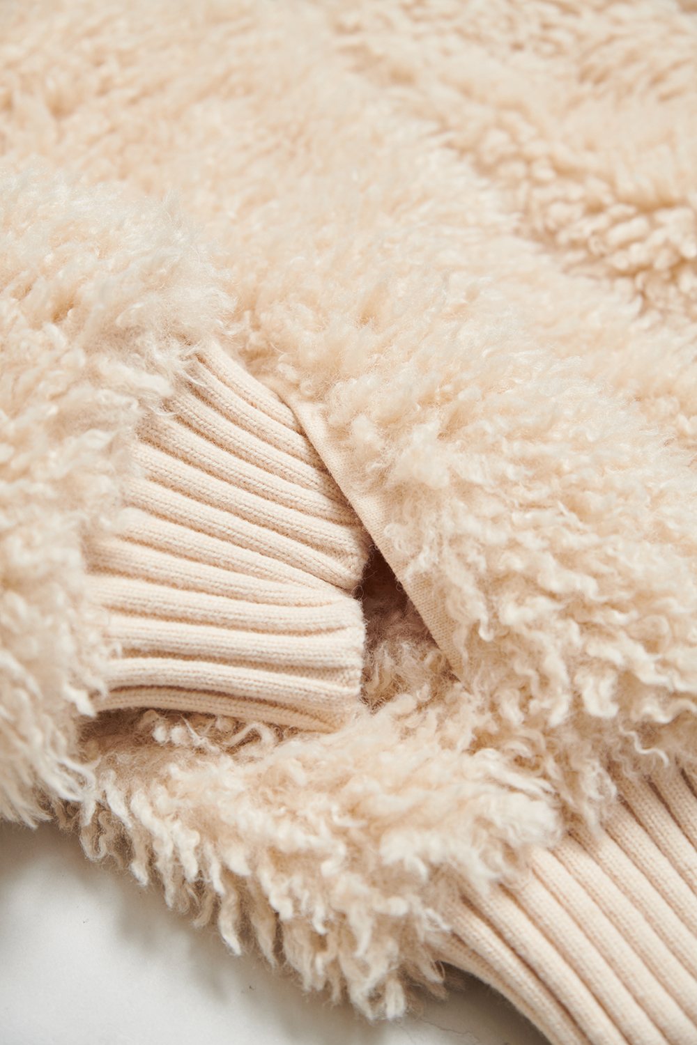 溫暖泰迪短版立領長毛外套 - 奶油杏色, 38