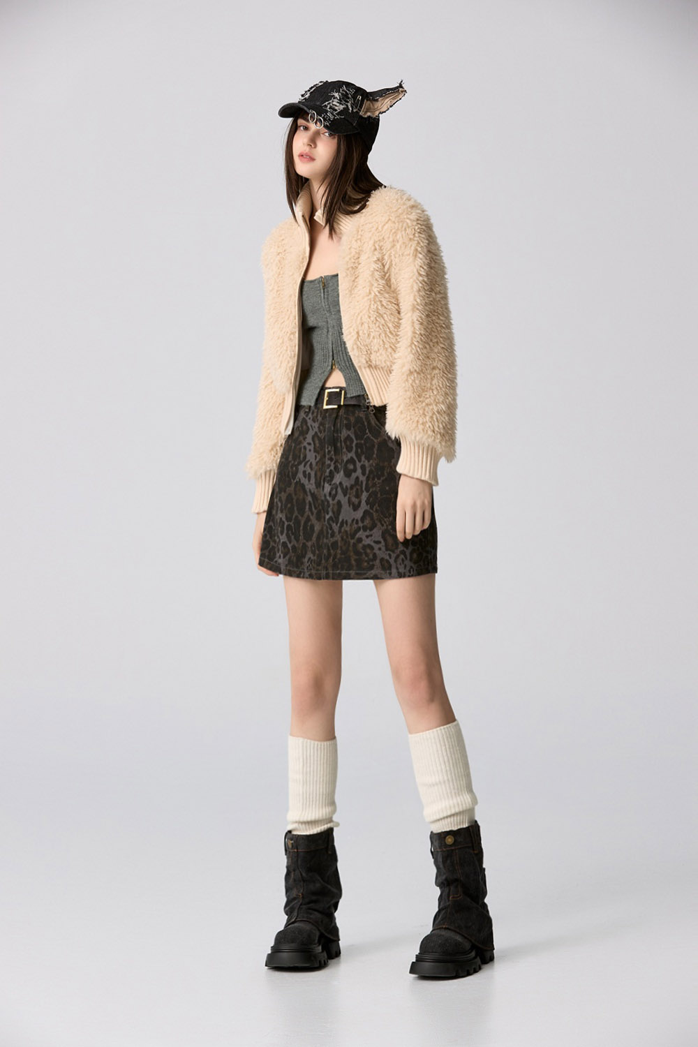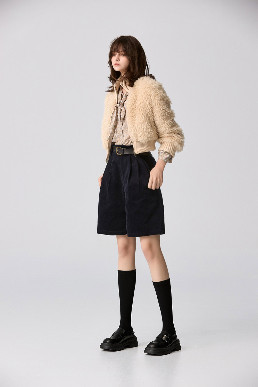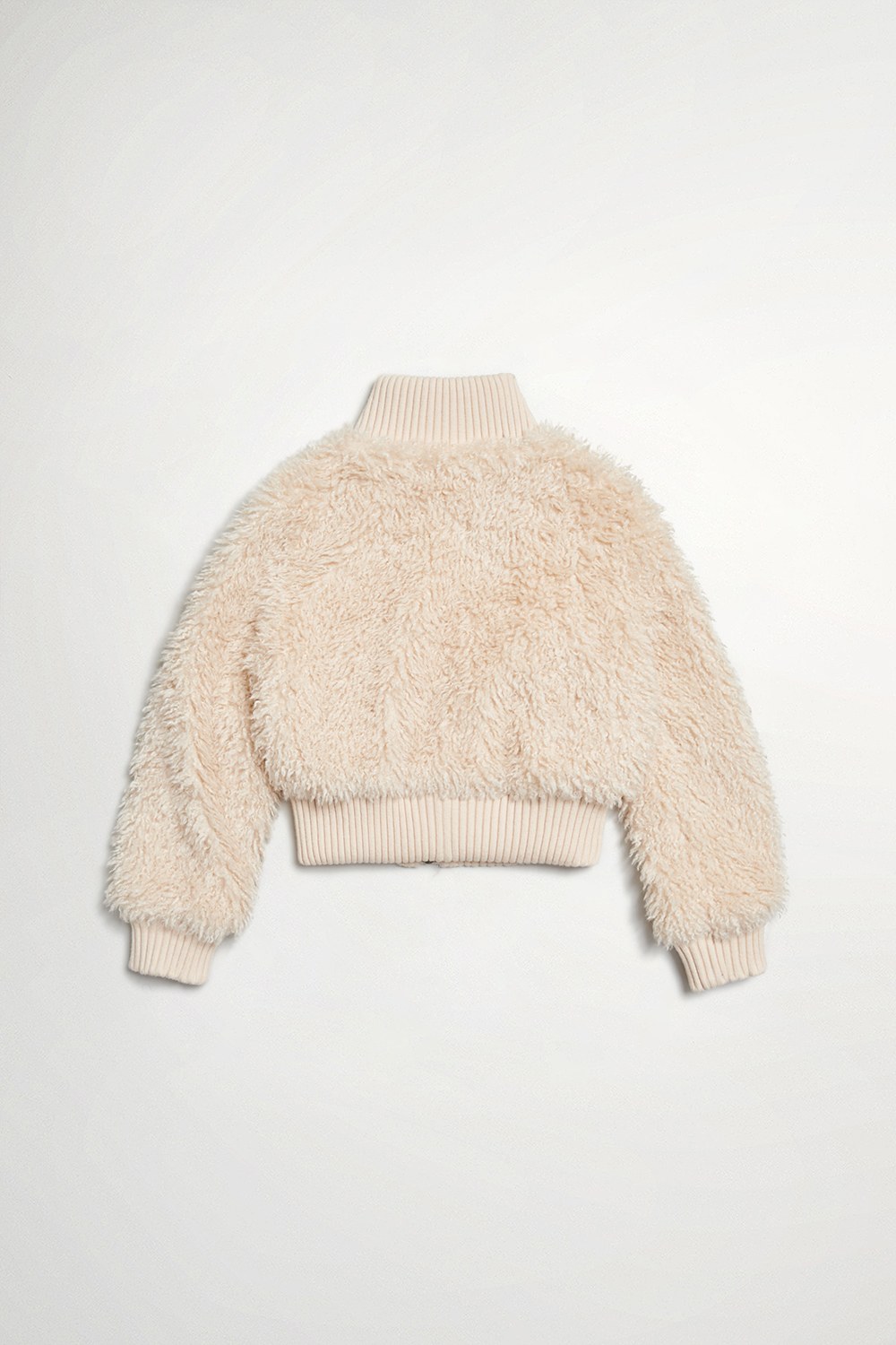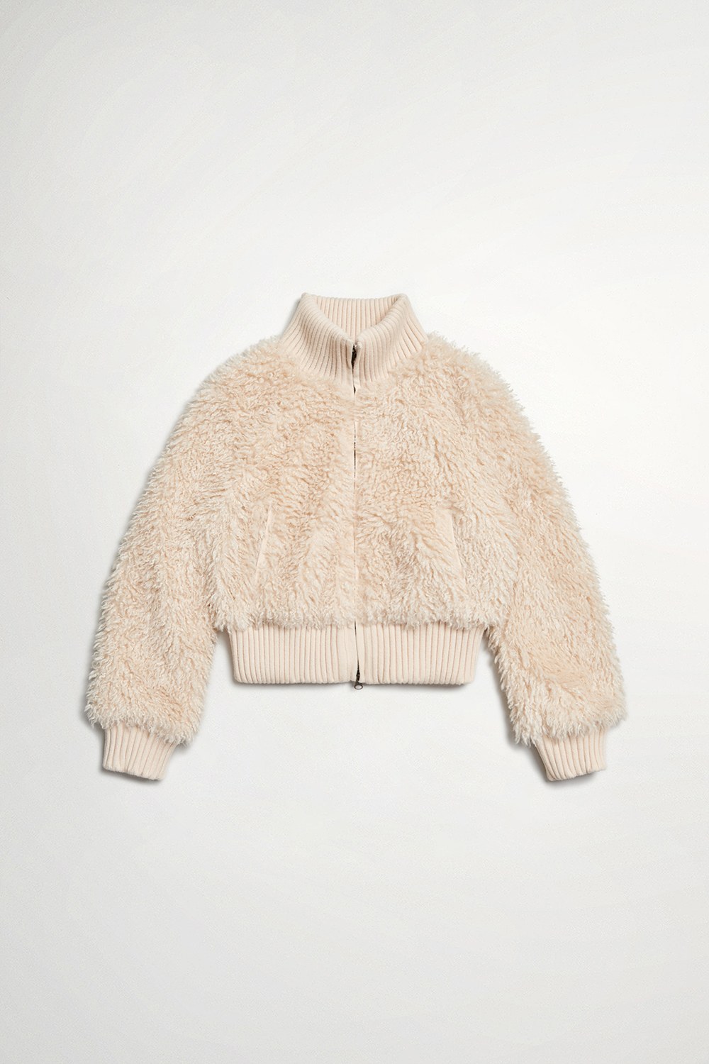 溫暖泰迪短版立領長毛外套 - 奶油杏色, 36