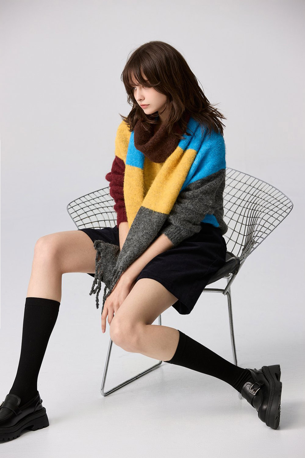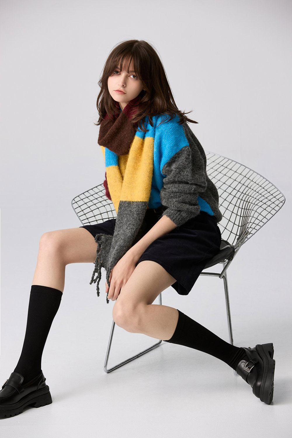 / 暖意馥郁色塊拼接搭配(圍巾)