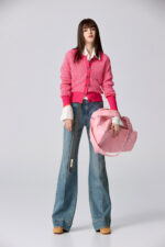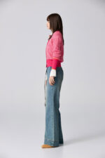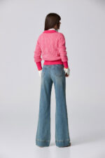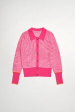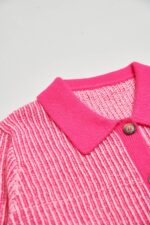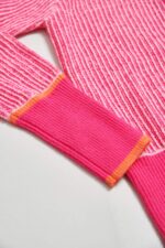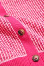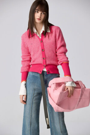 桃色朦朧直條配色針織外套