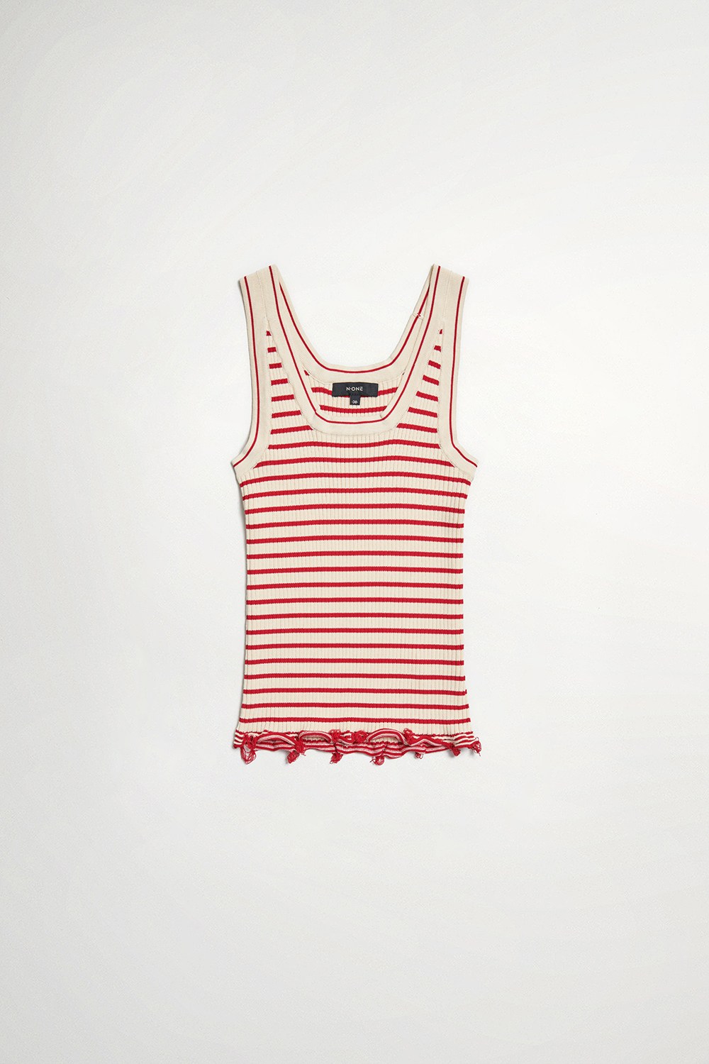 俏皮活潑破碎感捲邊針織上衣 - 耀眼赤紅, 40