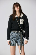 夜色迷人亮片花卉牛仔短褲