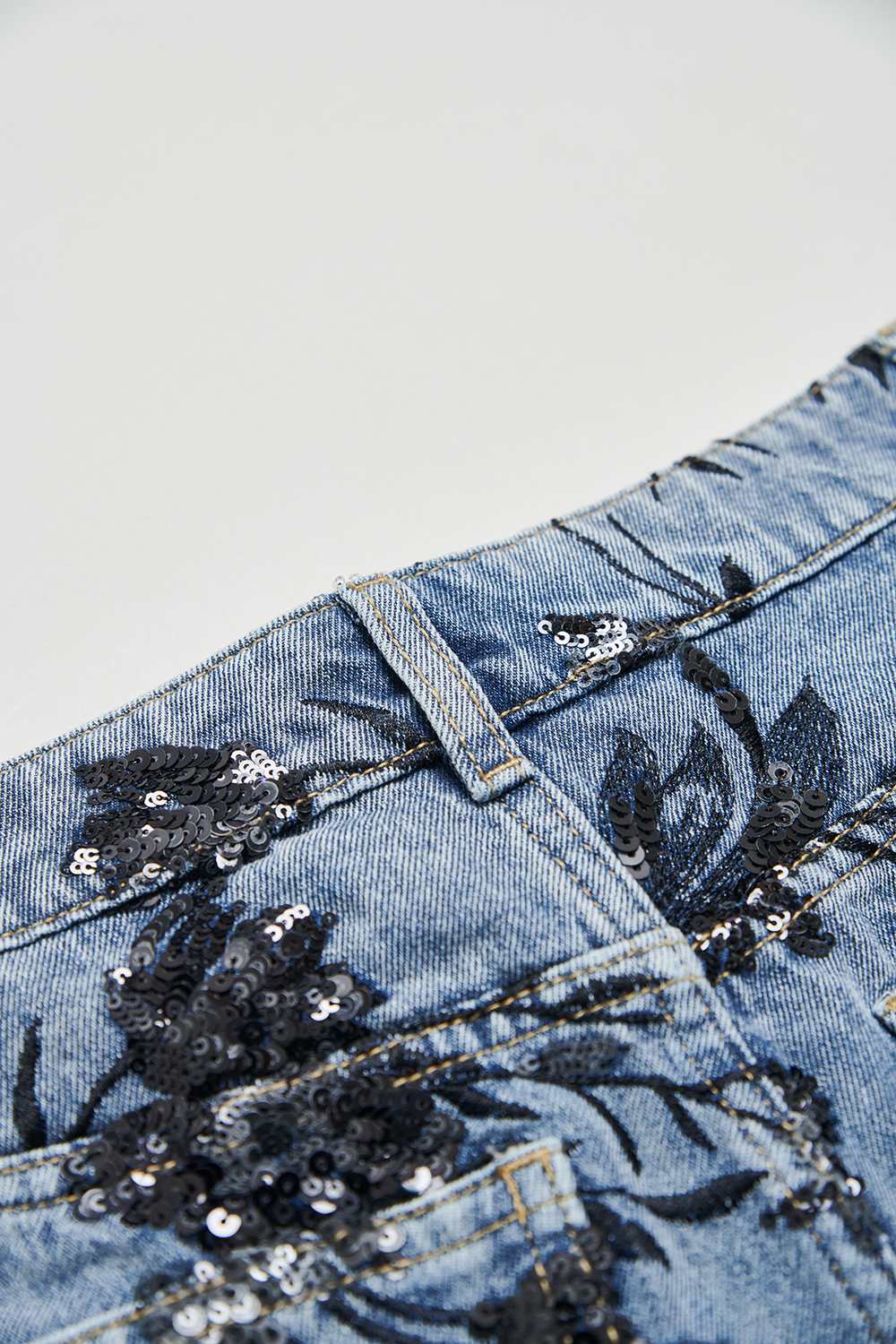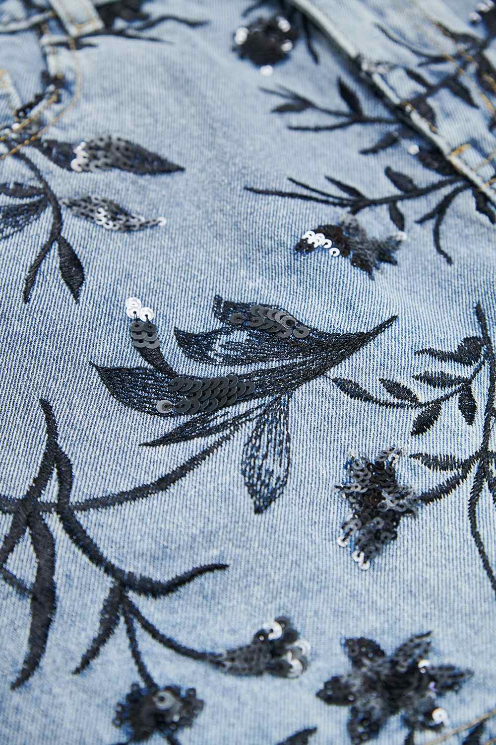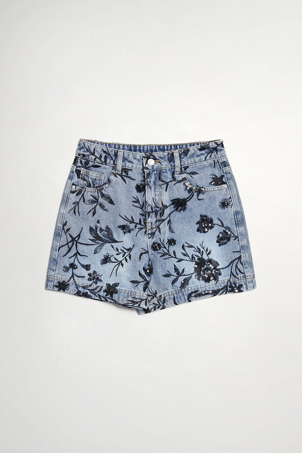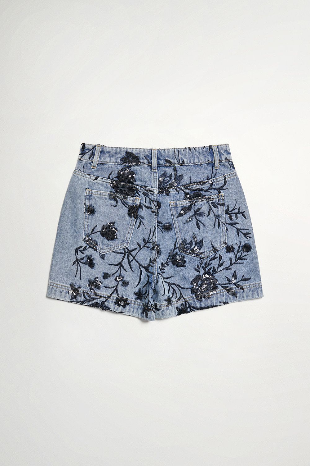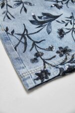 夜色迷人亮片花卉牛仔短褲 - 深邃藏藍, 40