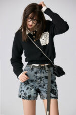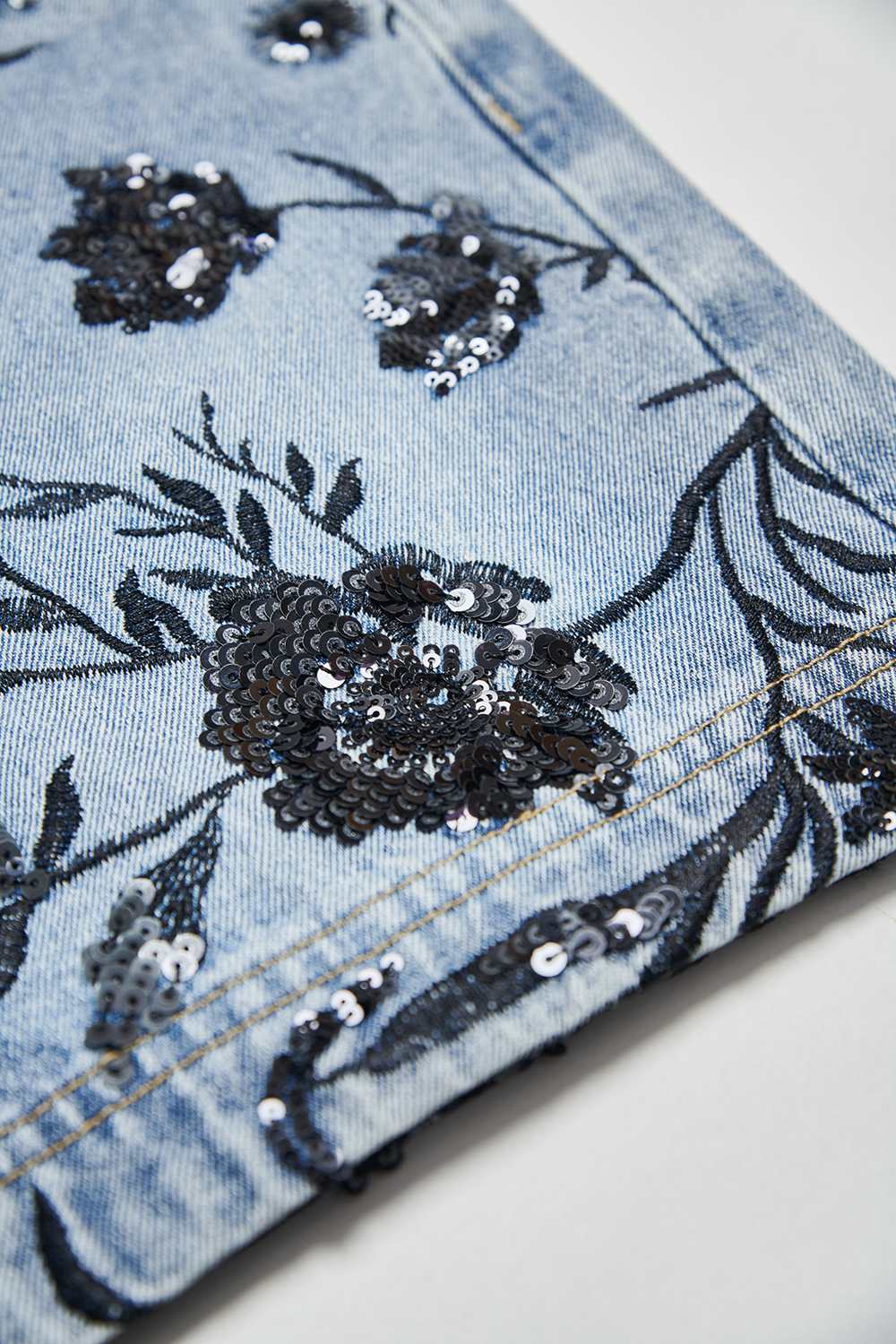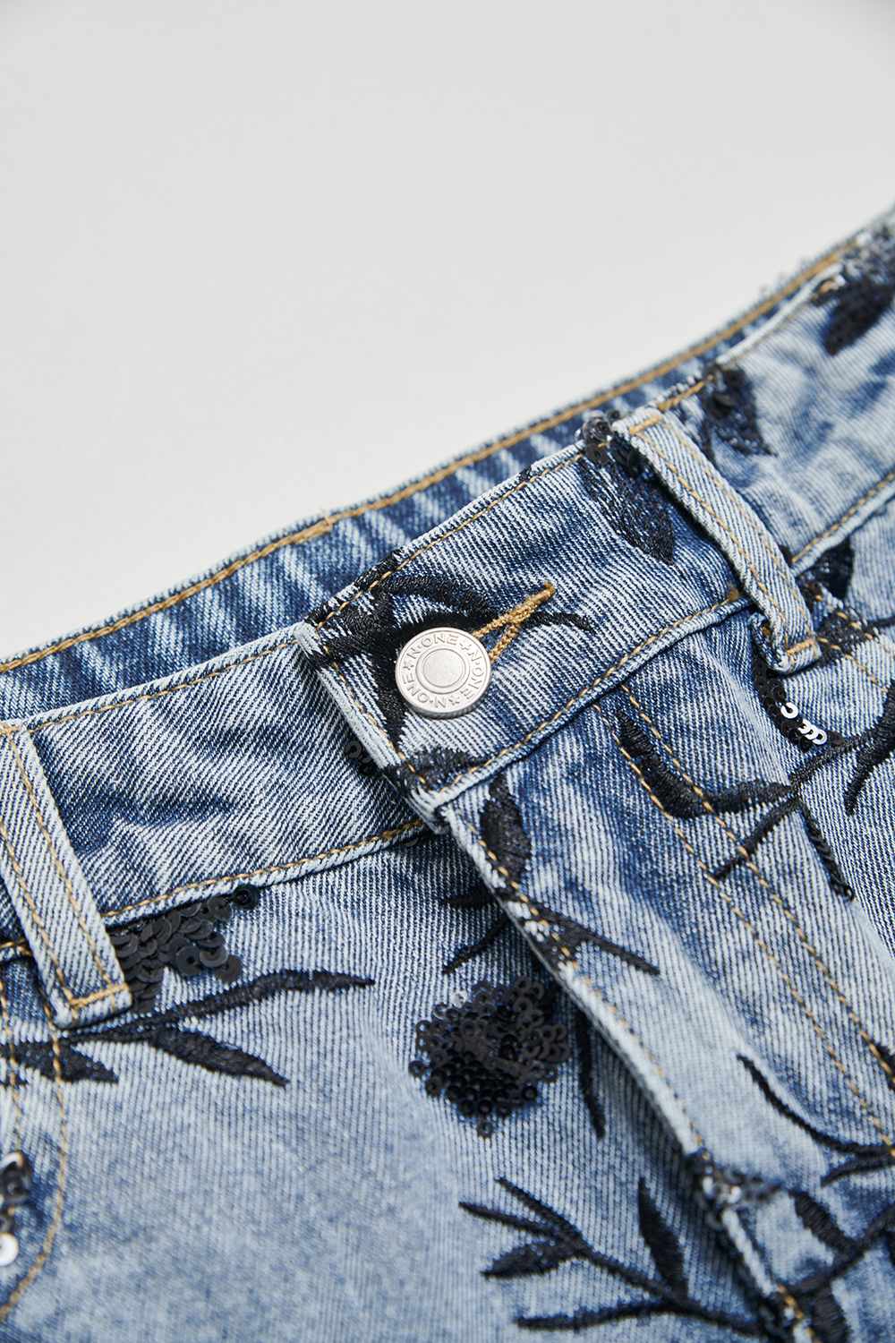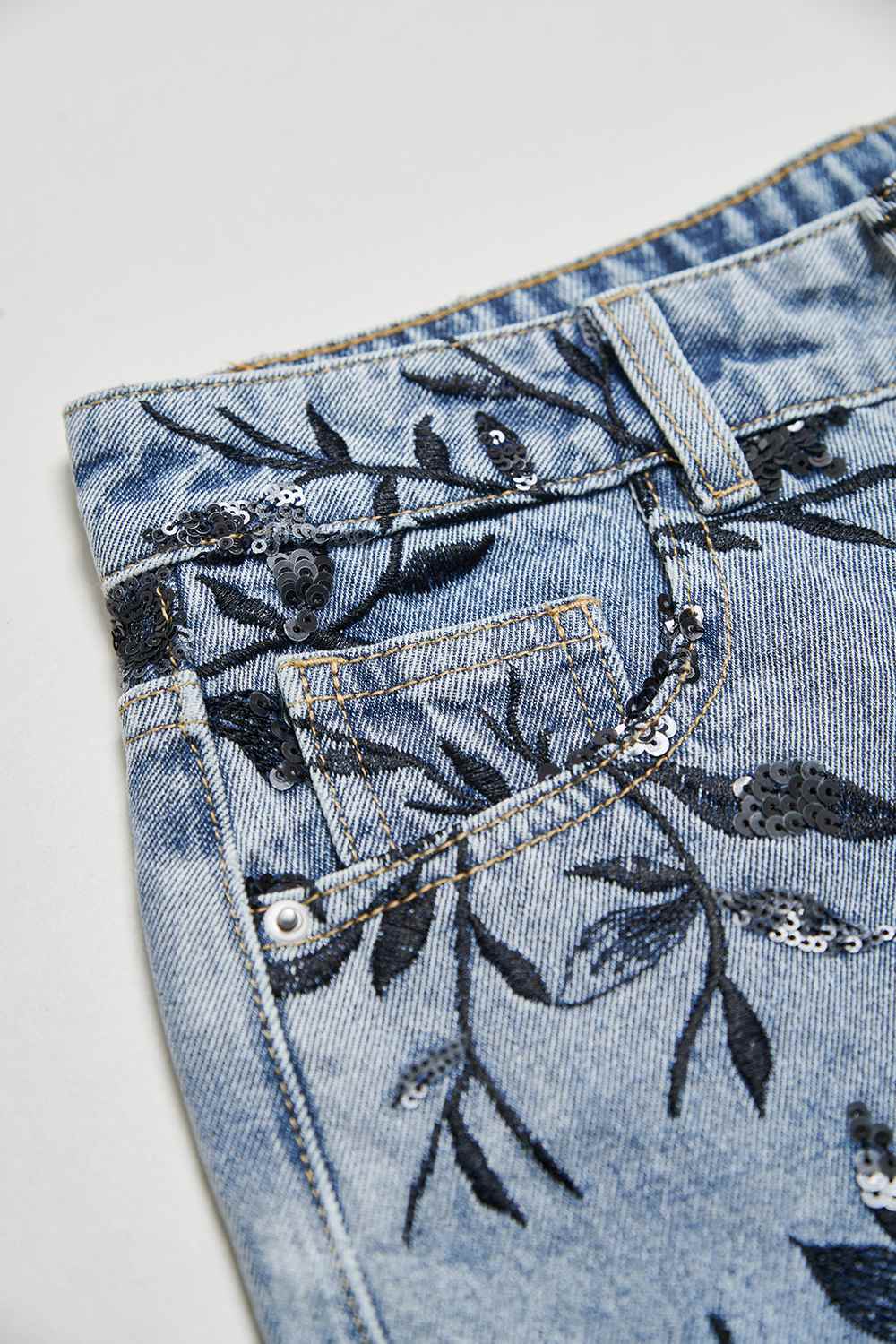 夜色迷人亮片花卉牛仔短褲 - 深邃藏藍, 40