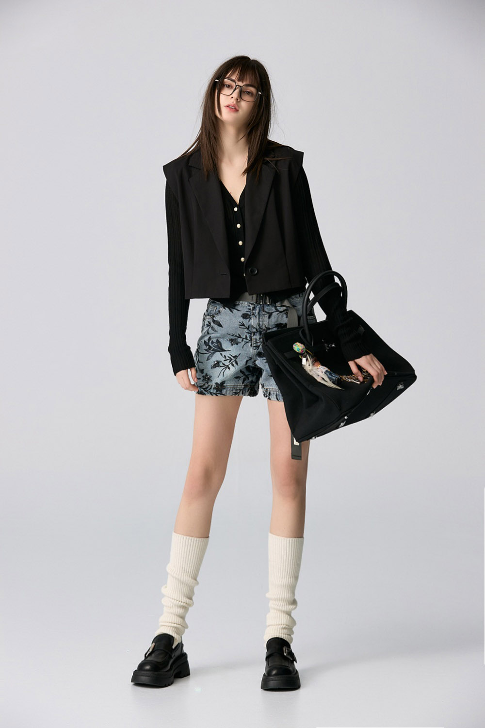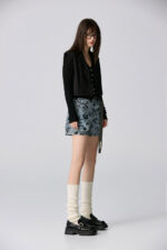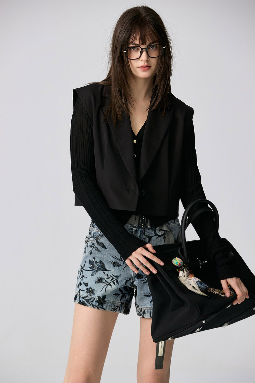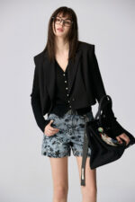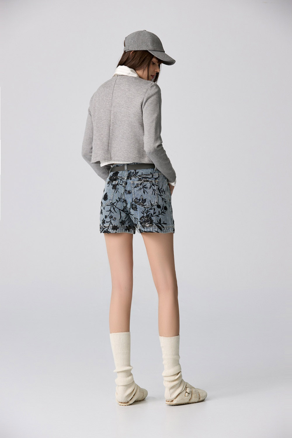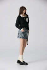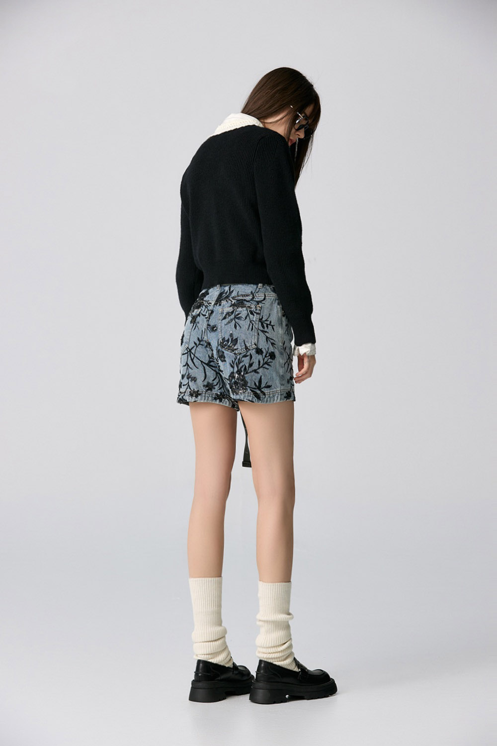 夜色迷人亮片花卉牛仔短褲 - 深邃藏藍, 40